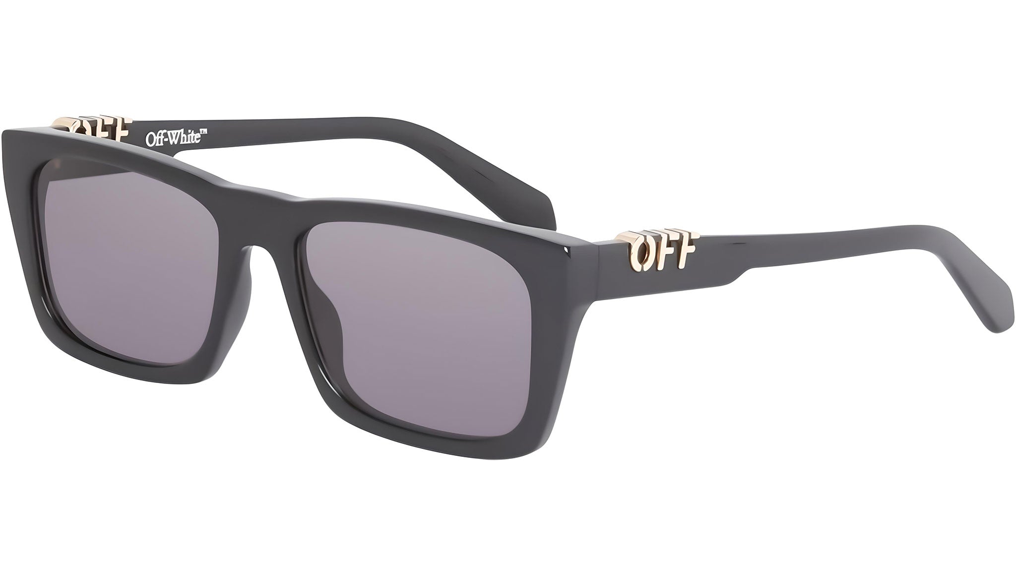 Occhiali da sole Off-White modello Albany codice colore 1007 con frontale in acetato nero tinta unita e lenti cat. 3 in polimero CR-39 grigio scuro. Rivenditore autorizzato Off-White Eyewear online. Gli occhiali vengono consegnati con custodia e accessori originali e sono coperti dalla garanzia ufficiale di 12 mesi del produttore.