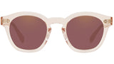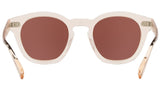 This distinctive sunglass is a bold, vintage design. A thick front view and thin top view acetate build makes this frame sleek and edgy. Offered in custom tortoise and translucent acetate colors with vibrant and mirrored lenses.