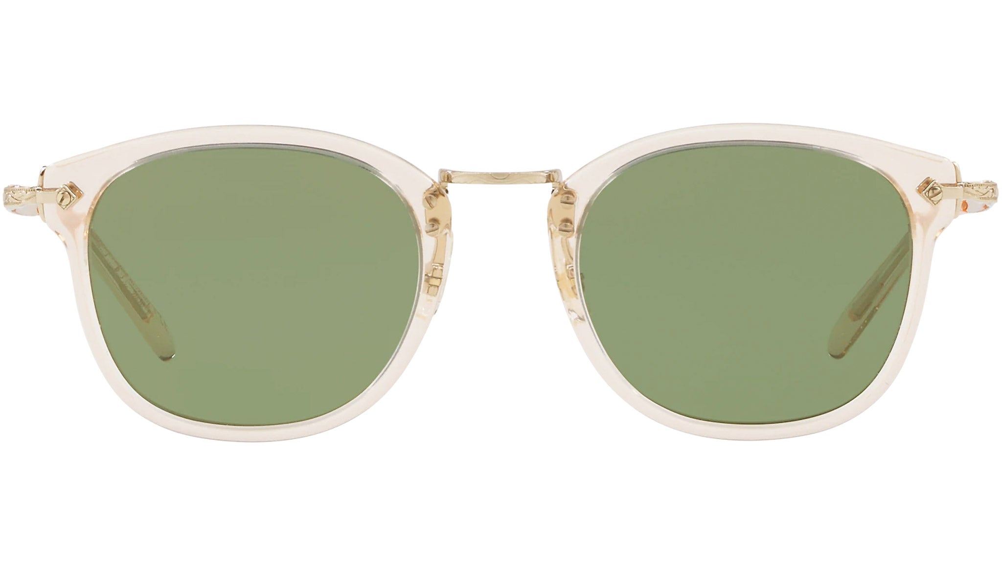 An original Oliver Peoples designs, the OP-506 is a combination style featuring a filigreed temple and bridge reminiscent of early machine age craftsmanship. Modernized with demi-flat glass lenses, the classic frame is now available as a sunglass.