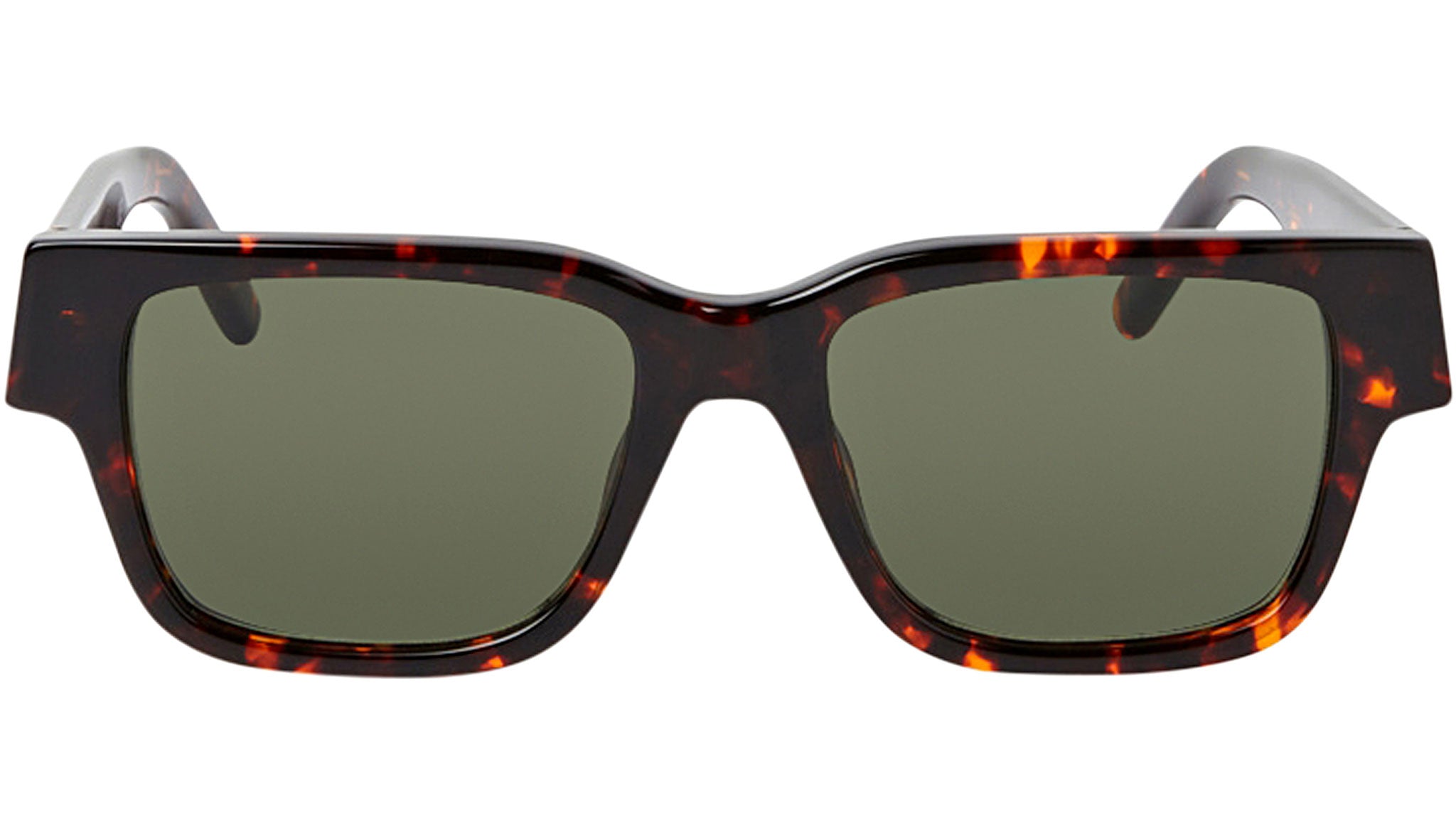 Il Newport di Palm Angels è un occhiale da sole vintage, dal design squadrato, reinterpretato in chiave moderna. Le asimmetrie sul frontale e sui lati della montatura creano le tipiche discrepanze geometriche del linguaggio Palm Angels. Le aste sono arricchite dall'iconico logo inciso, che è visibile anche sulla parte interna della cerniera metallica. Un tocco di lusso delicato.