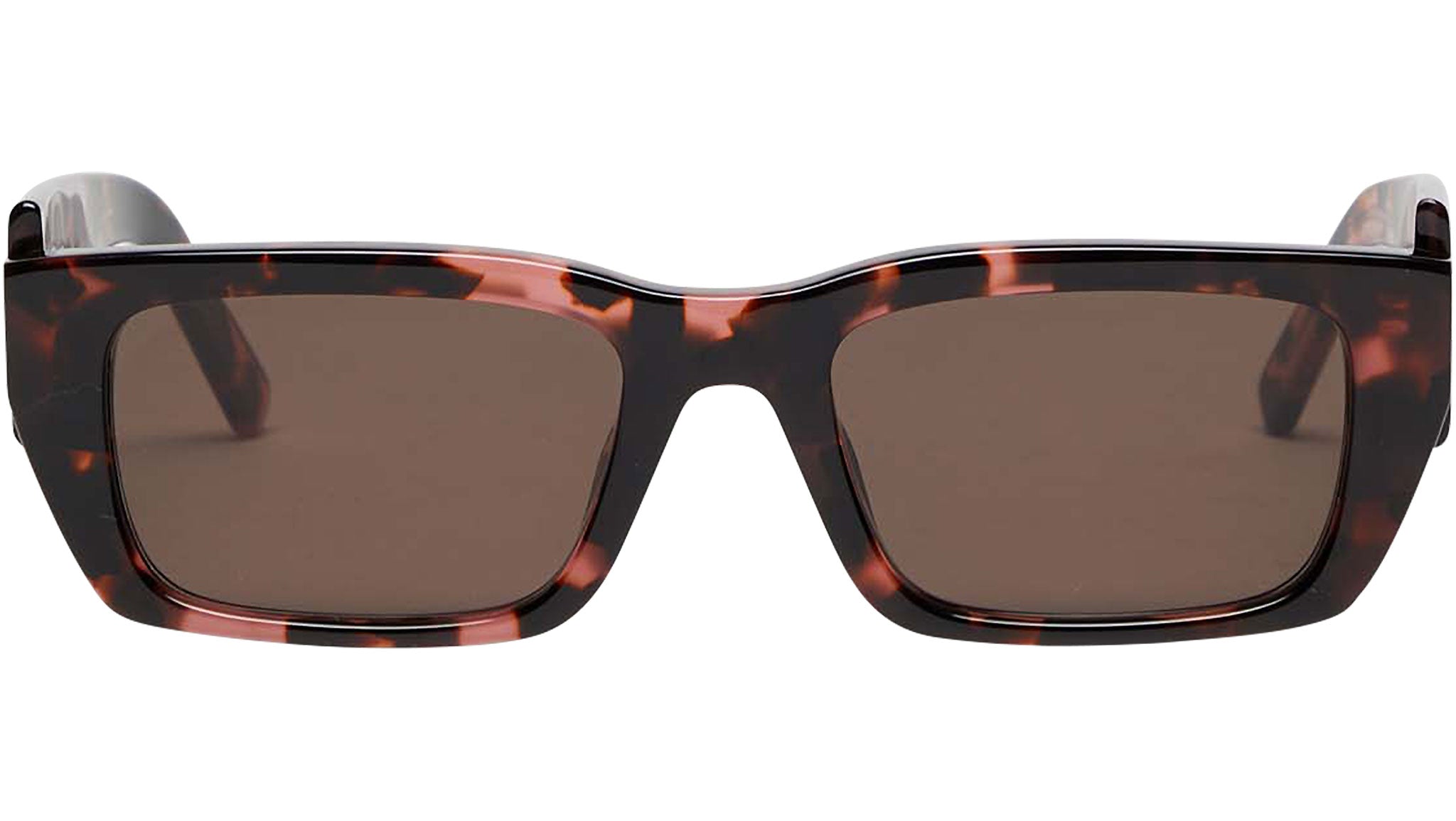 Inaspettato è la parola chiave per Palm. La struttura del modello è sfalsata da una dissonanza che rompe la linearità dell'asta, a creare una distorsione nella montatura. Gli occhiali da sole Palm fanno parte della nuova linea iconica e sono un design moderno e alla moda a forma rettangolare. Le aste giocano sulle asimmetrie per creare un effetto audace e son arricchite dall'iconico logo «Palm Angels».