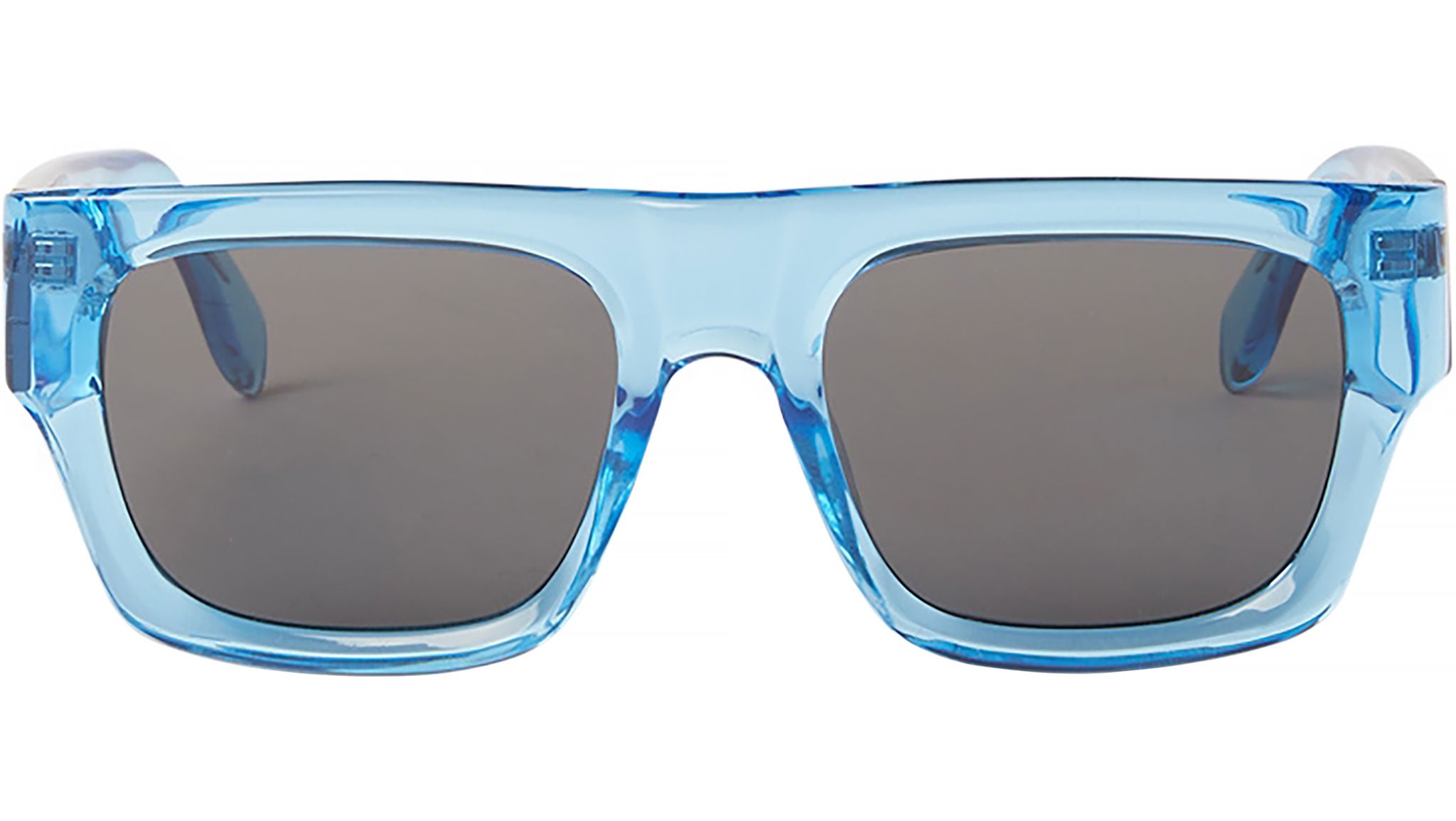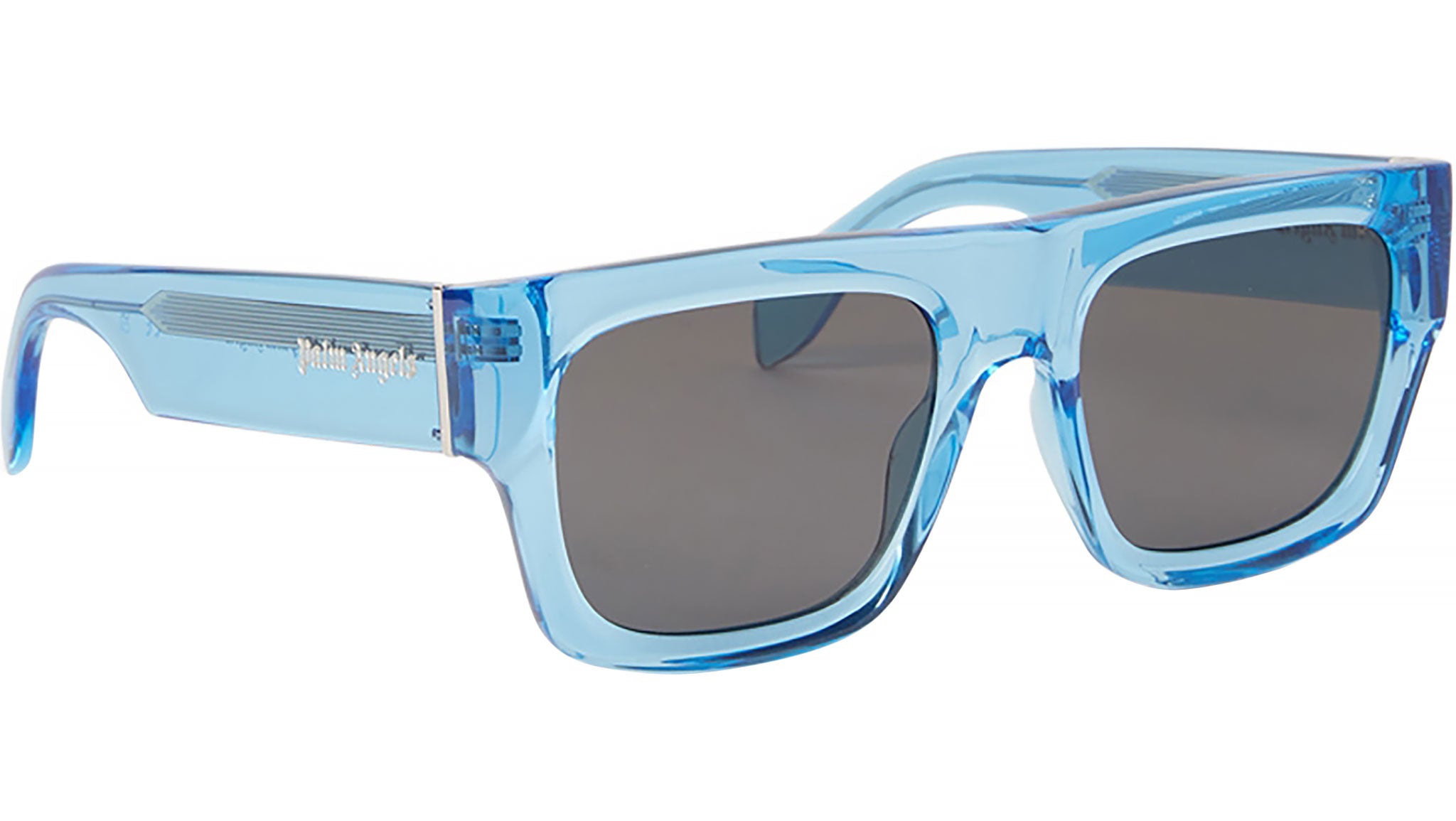 Pixley di Palm Angels è un occhiale da sole dal design deciso. La sua silhouette rettangolare, con una parte superiore piatta e punte laterali leggermente allungate, esprime un'atmosfera classica, raffinata ed elegante, che la rende perfetta per i look di tutti i giorni. Le aste dritte sono impreziosite da una sottile barra metallica incisa. Su entrambi i lati, l'iconico logo gotico Palm Angels inciso a laser, introduce un tocco di lusso in più.