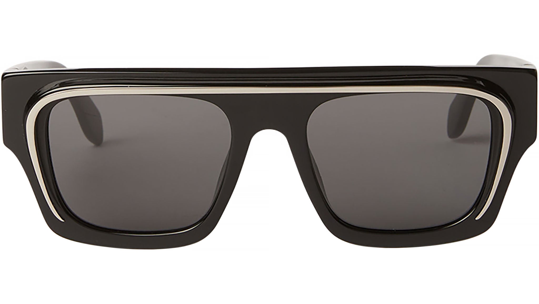 Gli occhiali da sole Salton di Palm Angels hanno una silhouette geometrica dal design rettangolare deciso, con la parte superiore lineare e le punte laterali leggermente allungate. I profili metallici che corrono lungo l'intera parte frontale, gli spoiler scultorei e le lenti intagliate rivitalizzano con elementi moderni una delle montature più classiche, per un look raffinato con una nota elegante. La costruzione geometrica delle aste modernizza il modello e lo completa il piccolo logo 3D in metallo che un tocco di raffinatezza in più.