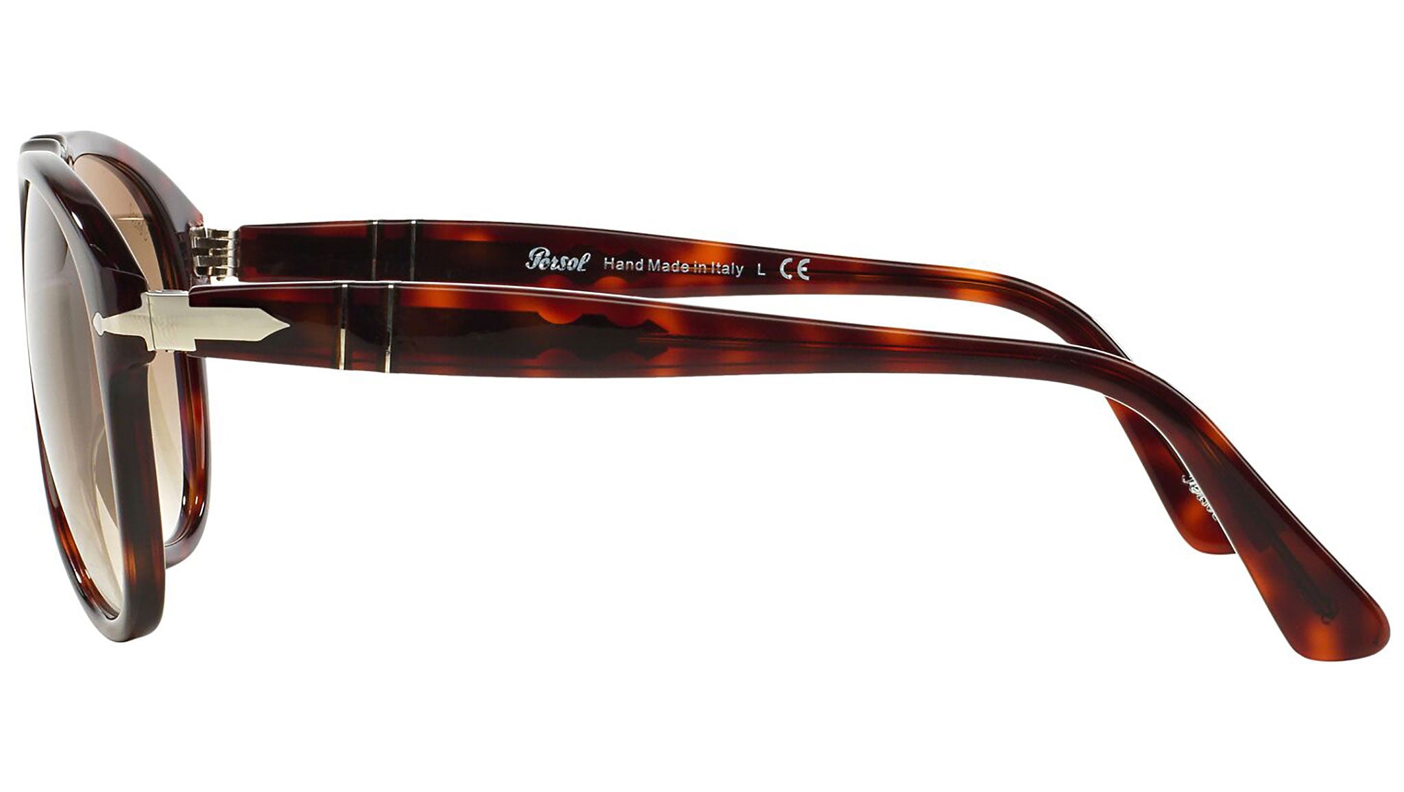 Tutto il meglio del design e della tecnologia in una montatura unica ed esclusiva che è diventata inconfondibile icona del brand. Il ponte a chiave, la leggendaria freccia e il sistema Meflecto sono i dettagli che hanno saputo trasformare questo modello in un classico senza tempo. Dalla soluzione standard alle polarizzate, la selezione di lenti da sole in cristallo rappresenta qualità ed eccellenza. Ogni prodotto è realizzato nei più preziosi materiali ottici e garantisce la massima protezione e chiarezza visiva. L'acetato realizzato dal cotone e pigmenti crea variazioni che caratterizzano esclusivamente gli occhiali da sole Persol, rendendo unica ogni montatura. Realizzati a mano con materiali di prima qualità, tutti gli occhiali sono un’opera d’arte naturale.
