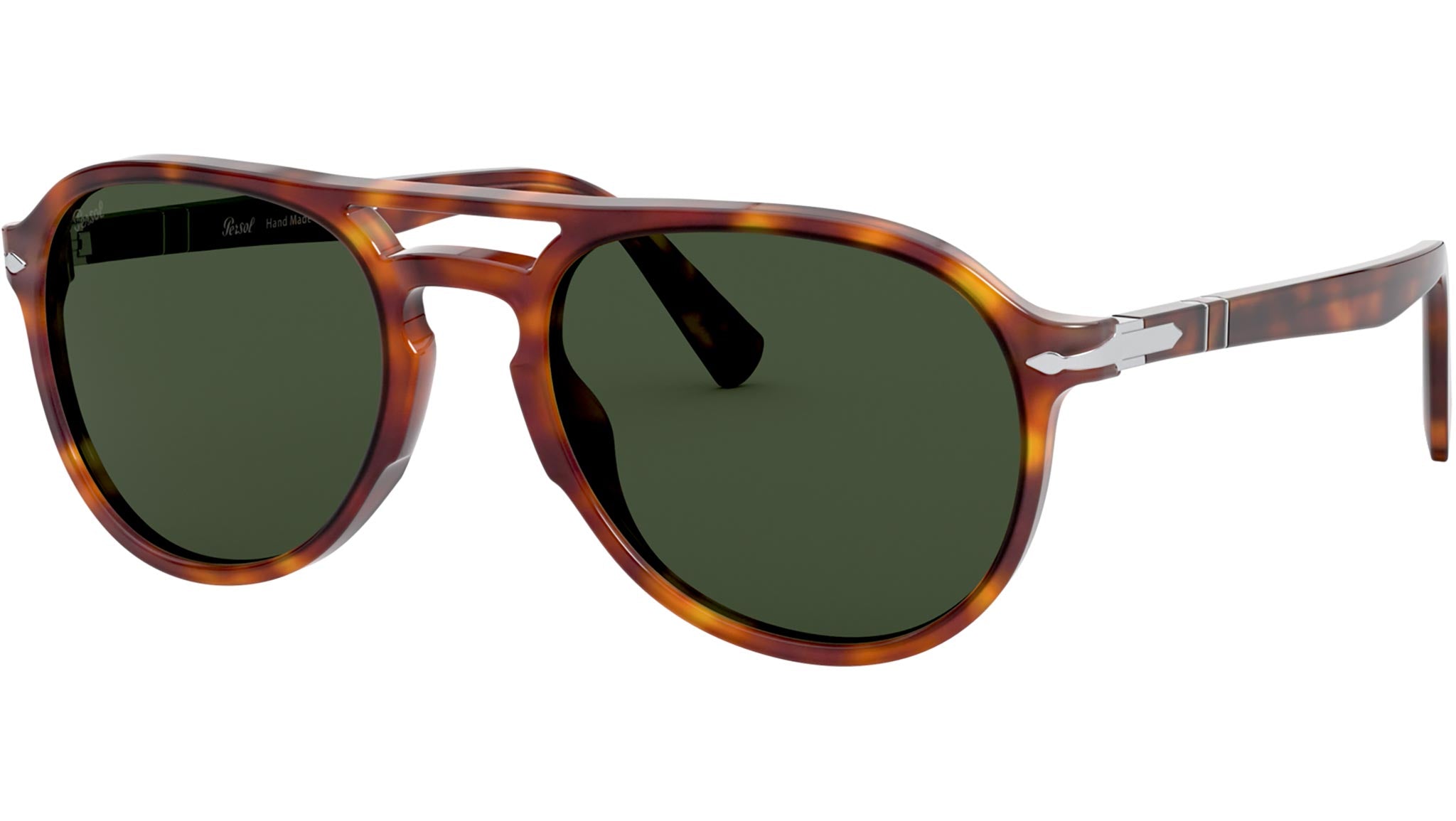 Occhiali da sole Persol modello PO3235S codice colore 24/31 con montatura color avana full rim acetato e lenti in CR-39 color verde.