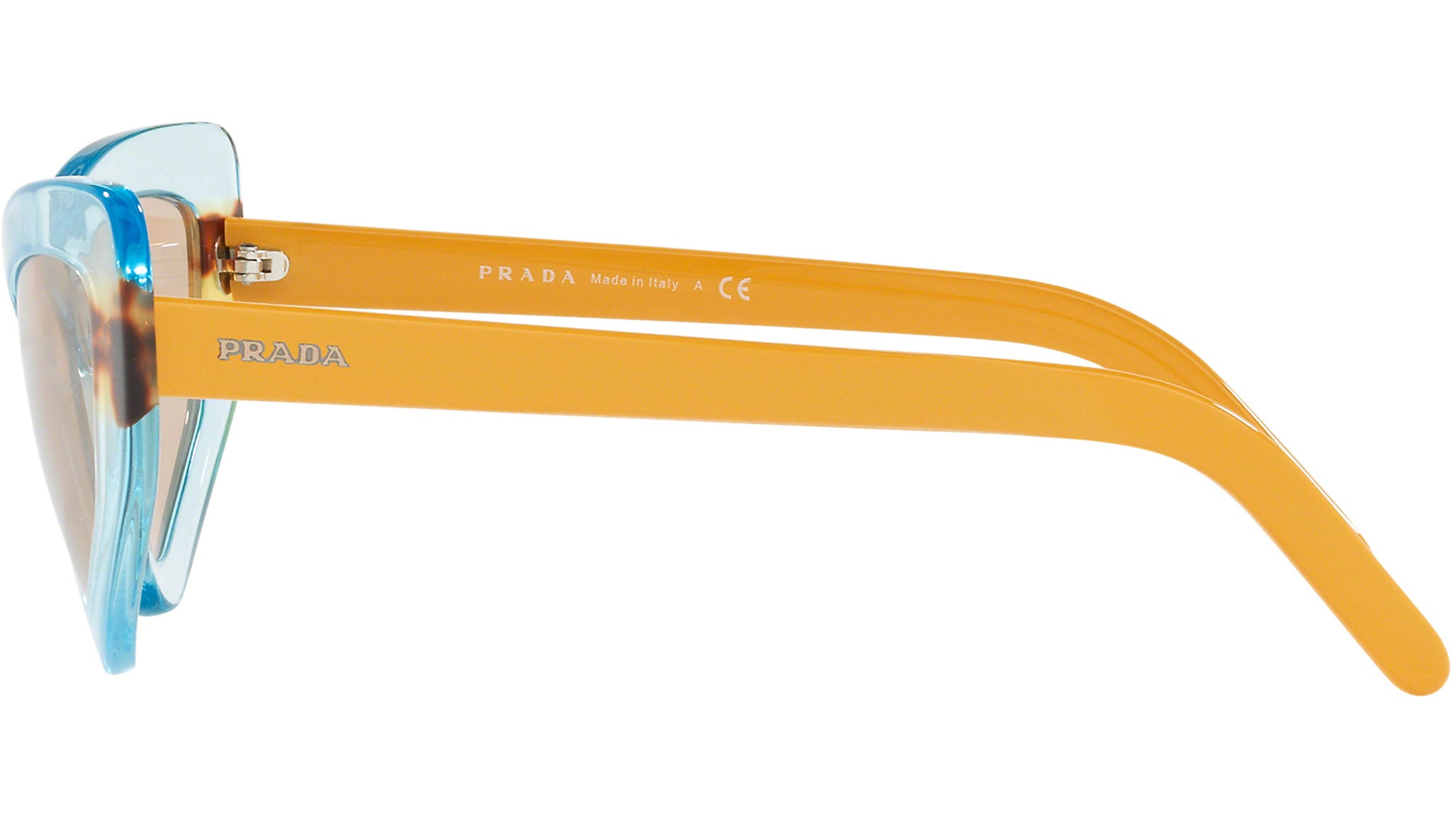 Occhiali da sole Prada modello PR11VS nella variante colore 4704I2 azzurro / avana medio con lenti color marrone chiaro. Prada è uno dei marchi più rappresentativi della moda italiana, un esempio di stile, dove cultura e tradizione si fondono in uno dei brand più innovativi, prestigiosi e riconosciuti al mondo. Le collezioni di occhiali da sole Prada rispecchiano una grande attenzione ai dettagli e alle nuove tendenze, per uno stile inconfondibile, senza eguali, di raffinata eleganza e qualità assoluta.