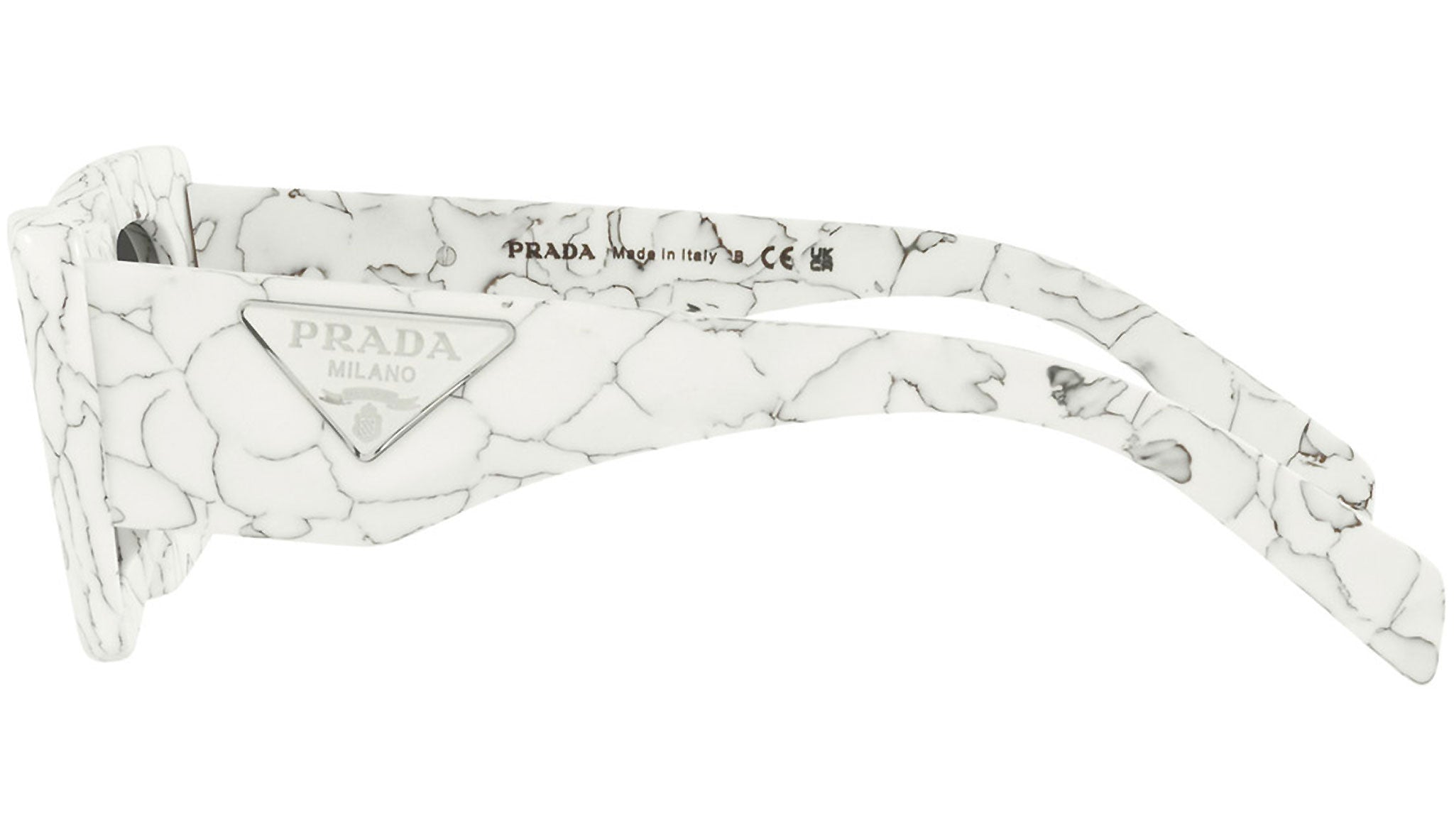 Occhiali da sole Prada modello PR13ZS nella variante colore 17D5S0 bianco marmorizzato opaco con lenti color grigio scuro. Prada è uno dei marchi più rappresentativi della moda italiana, un esempio di stile, dove cultura e tradizione si fondono in uno dei brand più innovativi, prestigiosi e riconosciuti al mondo. Le collezioni di occhiali da sole Prada rispecchiano una grande attenzione ai dettagli e alle nuove tendenze, per uno stile inconfondibile, senza eguali, di raffinata eleganza e qualità assoluta.