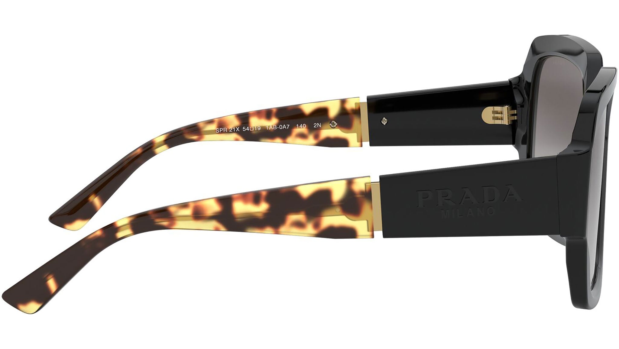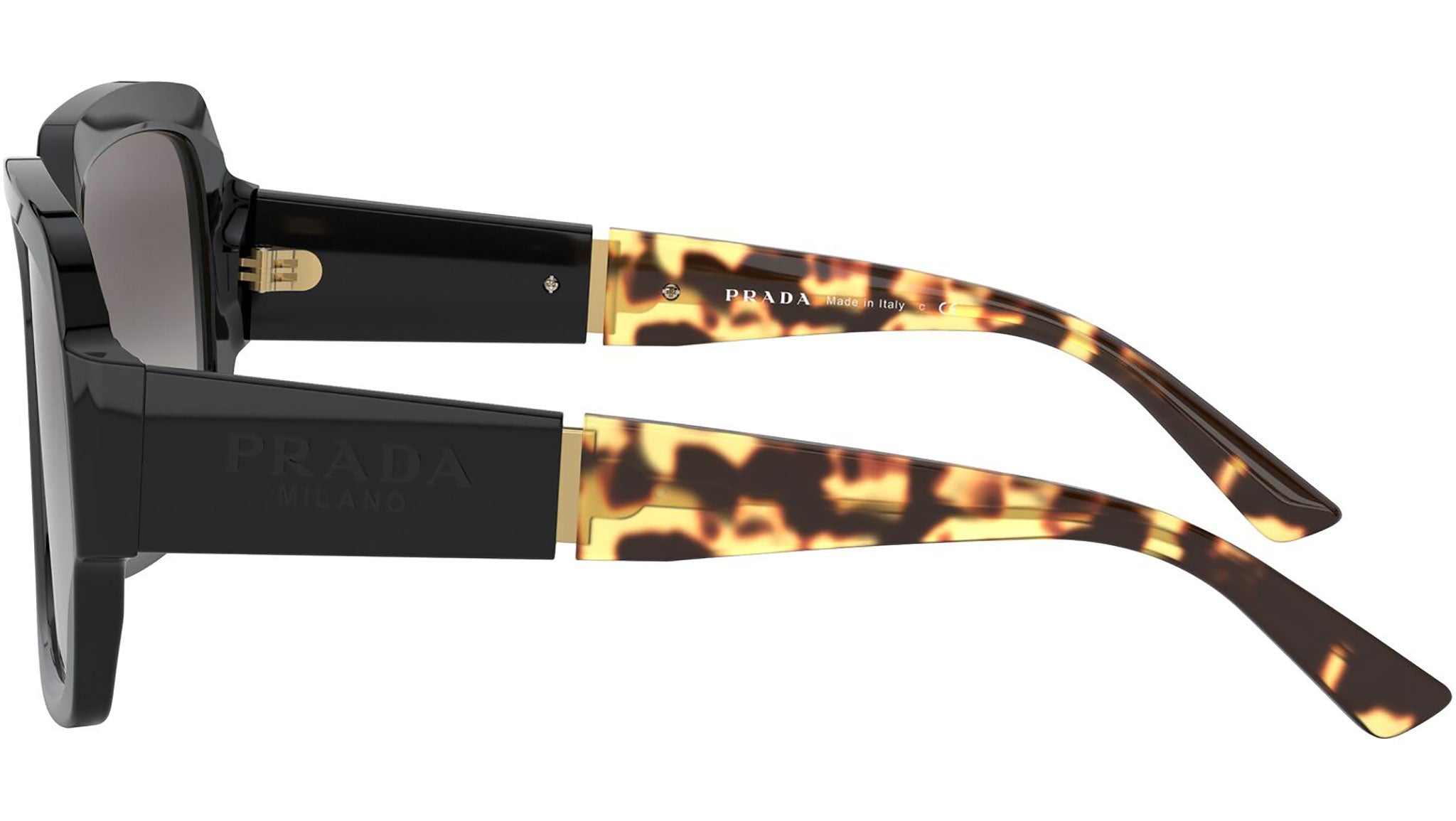 Prada sunglasses model PR 21XS, black frame variant, color code 1AB0A7 with grey gradient lens. Prada represents the best of Italian culture and tradition. It is one of the most innovative, prestigious and widely recognized brands in the fashion and luxury goods industries, with a keen attention to details and new trends.