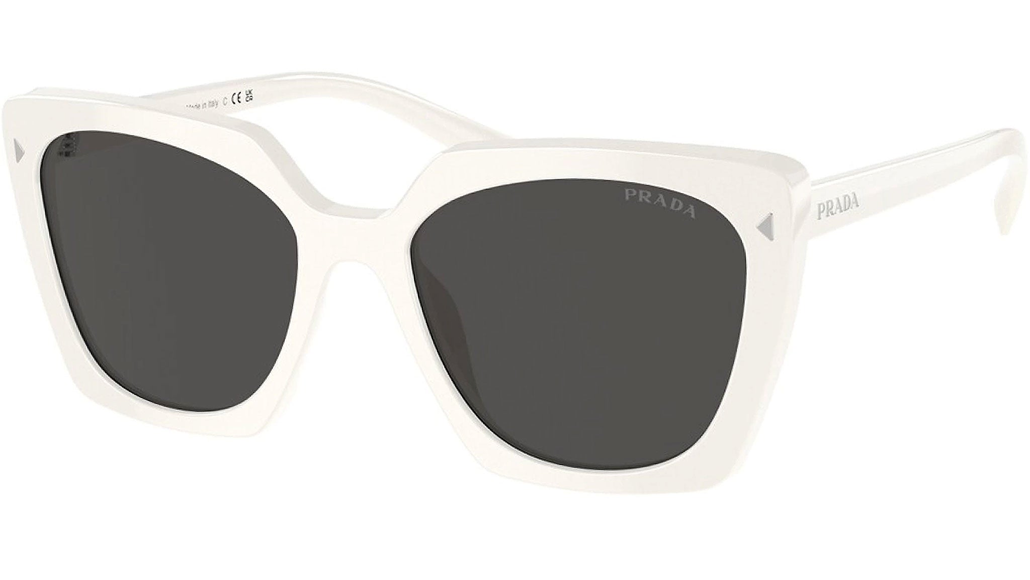 Occhiali da sole Prada modello PR23ZS variante colore 1425S0 bianco talco, con lenti color grigio scuro. Prada è uno dei marchi più rappresentativi della moda italiana, un esempio di stile, dove cultura e tradizione si fondono in uno dei brand più innovativi, prestigiosi e riconosciuti al mondo. Le collezioni di occhiali da sole Prada rispecchiano una grande attenzione ai dettagli e alle nuove tendenze, per uno stile inconfondibile, senza eguali, di raffinata eleganza e qualità assoluta.