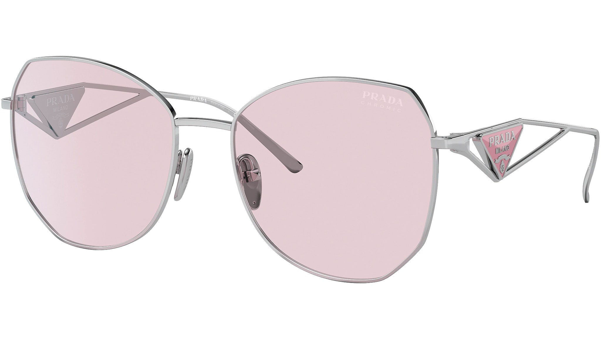 Occhiali da sole Prada modello PR 57YS nella variante colore 1BC06R argento con lenti color rosa fotocromatico. Prada è uno dei marchi più rappresentativi della moda italiana, un esempio di stile, dove cultura e tradizione si fondono in uno dei brand più innovativi, prestigiosi e riconosciuti al mondo. Le collezioni di occhiali da sole Prada rispecchiano una grande attenzione ai dettagli e alle nuove tendenze, per uno stile inconfondibile, senza eguali, di raffinata eleganza e qualità assoluta.