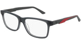 Occhiali da vista Puma Active modello PU0341O 004, variante colore grigio trasparente lucido con astine color grigio. Progettati per adattarsi a chi non sta mai fermo, agli sportivi, a tutti coloro che cercano uno stile di vita dinamico: Puma Eyewear è per gli impavidi, gli audaci e gli attivi, per coloro che vedono oltre le tendenze e sfidano le convenzioni, guardando sempre avanti.