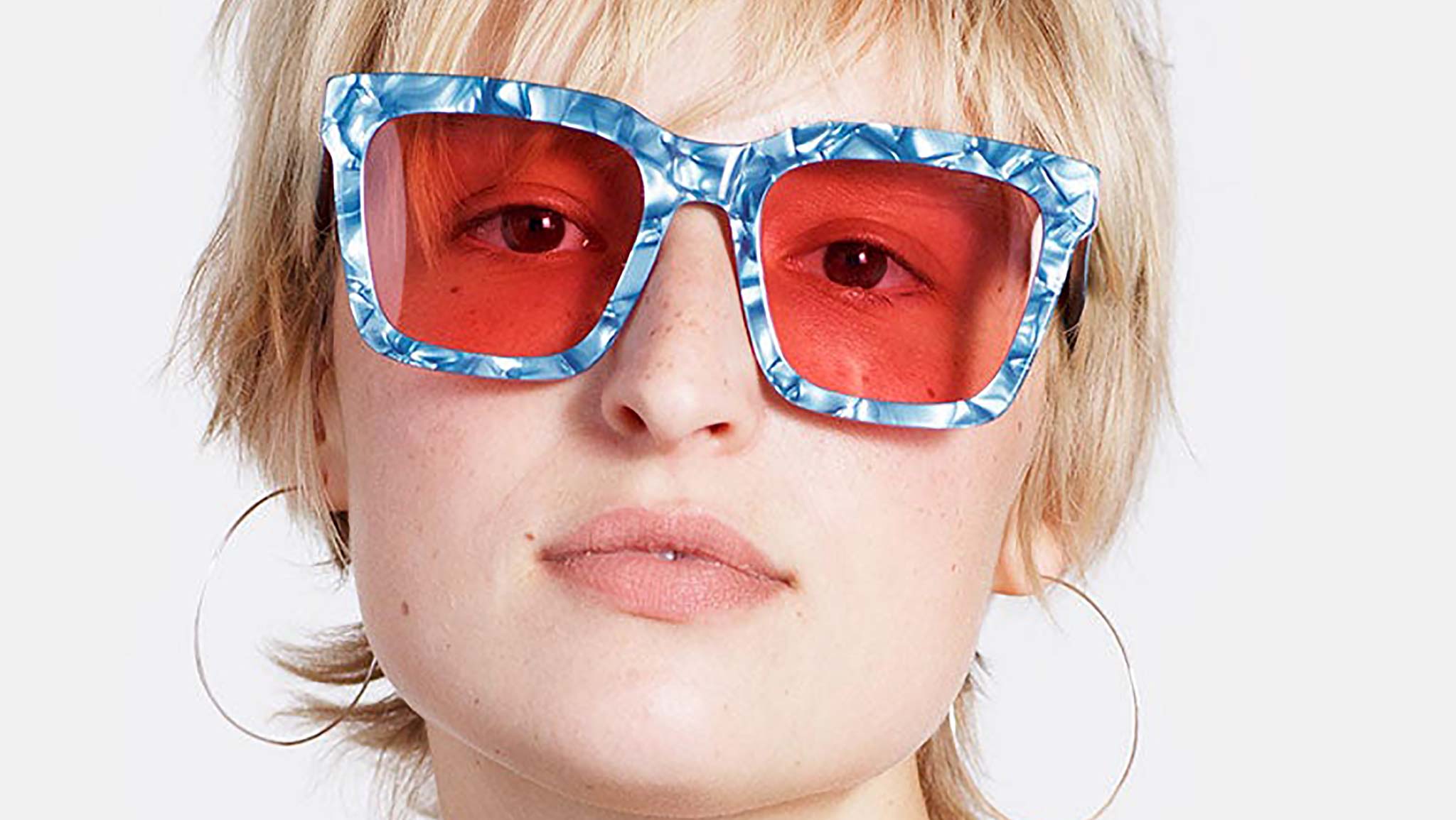 Retrosuperfuture sunglasses model Aalto Blue Pearl. Sizes: R Lens Width: 54 mm. Frame Front: 147 mm. Frame Side: 145 mm. Product Code Size R: KLM