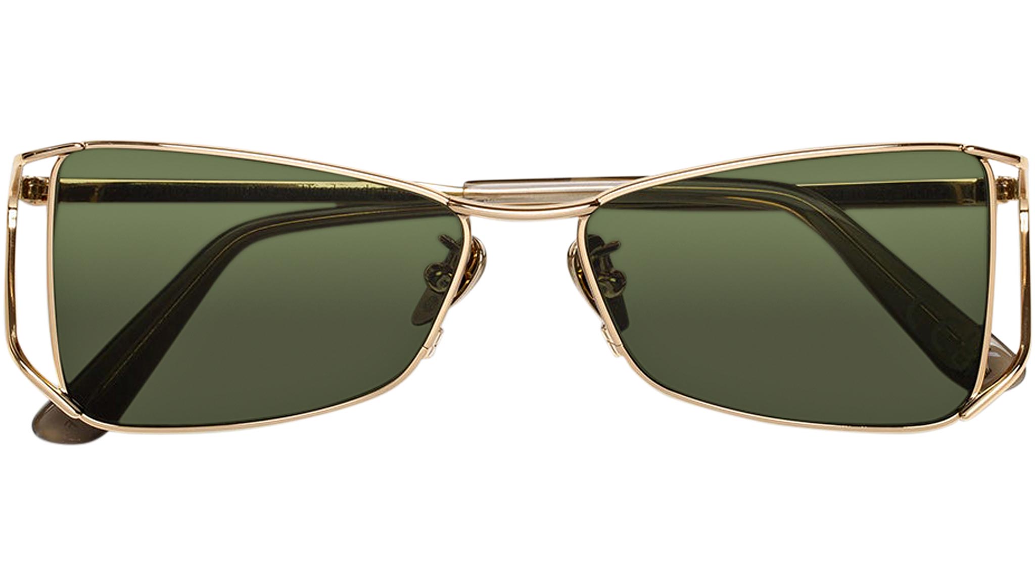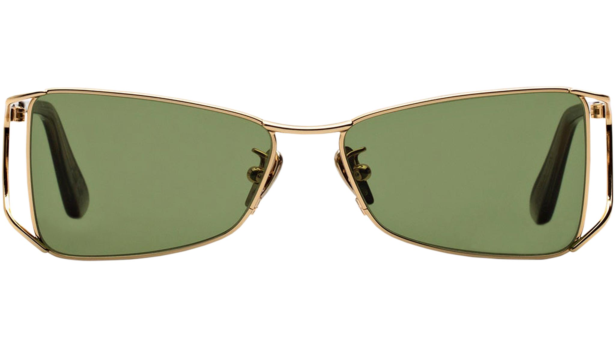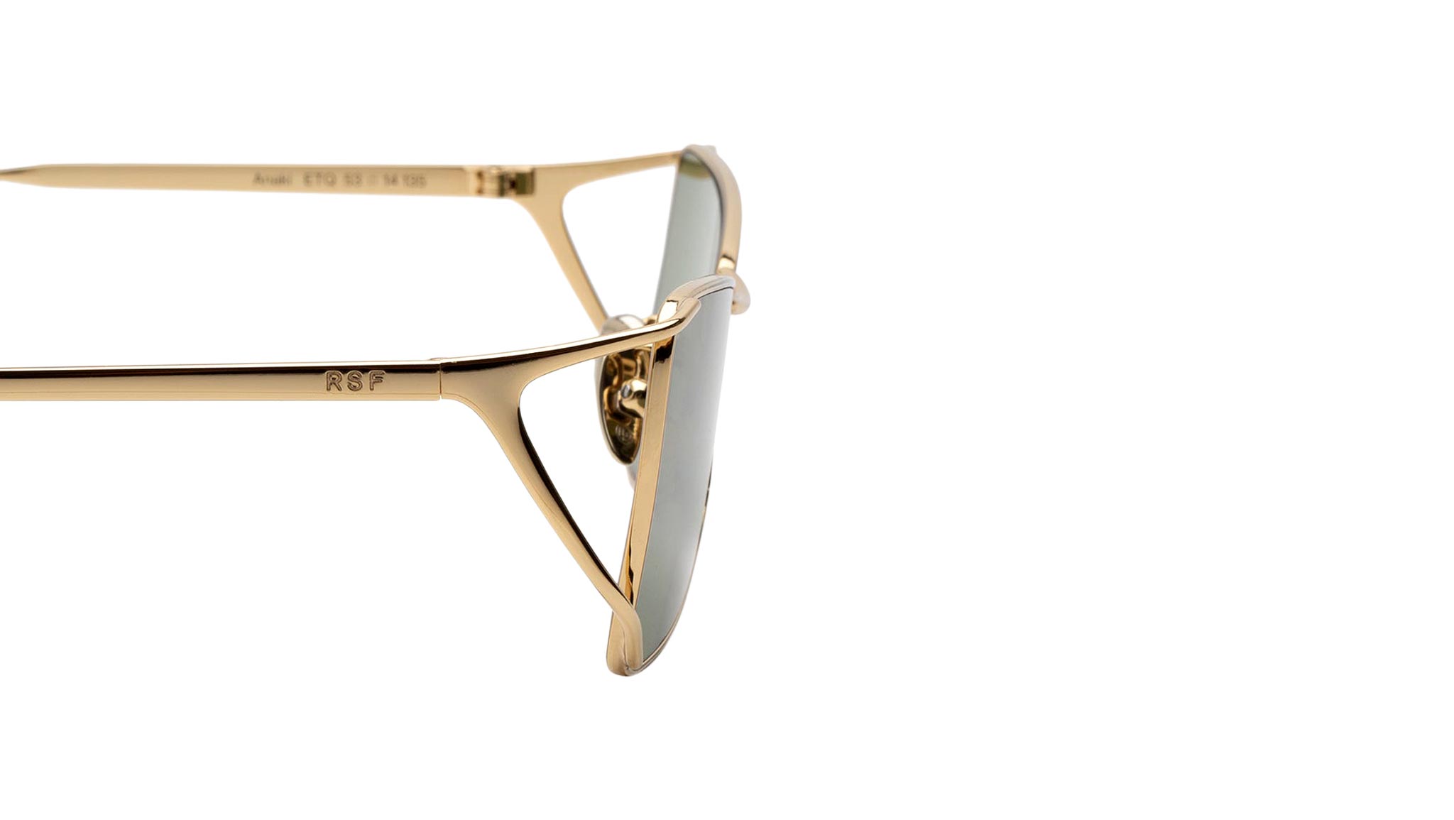 Anaki is a fresh take on metal frames, designed to merge high-end craftsmanship with a modern street aesthetics. The shape features a low-riding, oblique lenses that give it a sharp edge. Anaki’s unique construction is hollow on the sides, resulting in a lightweight, functional yet essential piece. This is an avant-garde metal shape that comes in gold finish with bottle green lenses. Sizes: R Lens Width: Frame Front: Frame Side: Product Code Size R: ETQ