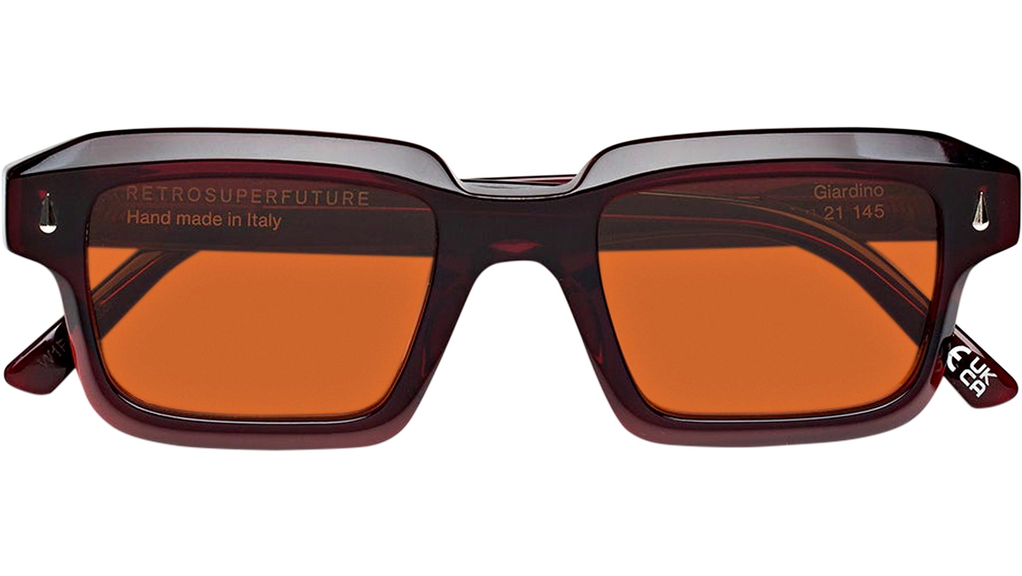 Angular, chunky and bold, Giardino is a unique frame with a determined, precise shape. Characterised by wide rectangular lenses, the model is a reinterpretation of 1950s silhouettes, updated with an emphasis on sculpted acetate rims and essential geometries. Crafted from shiny black acetate, this is an elevated piece of eyewear to be worn day after day. This model comes with black lenses and gold decors. Sizes: R Lens Width: 50 mm. Frame Front: Frame Side: 145 mm. Product Code Size R: W1F