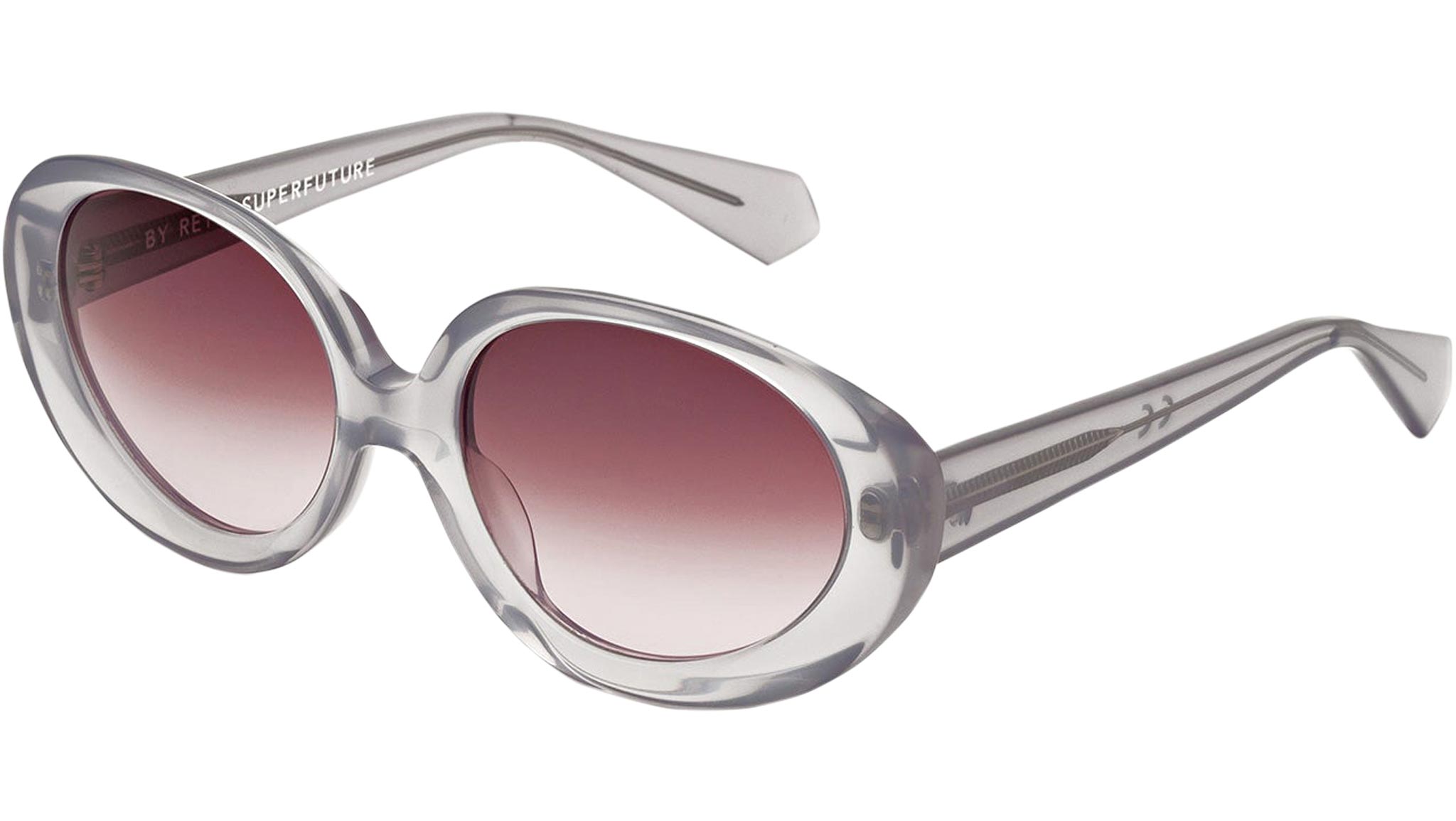 Designed fo the Vacanze Italiane collection, Ines Amarena recalls two timeless styles: a classic Italian diva matched with a laid-back Seventies look. A soft grey acetate covers the curves of the frame and encases its particularly dazzling fading lenses. Ines Amarena sports lenses by ZEISS in a faded aubergine. The box contains a soft case and a cleaning cloth. Size: R Lens Width: 56mm Frame Front: mm. Frame Side: 145mm Product Code Size R: 5HW
