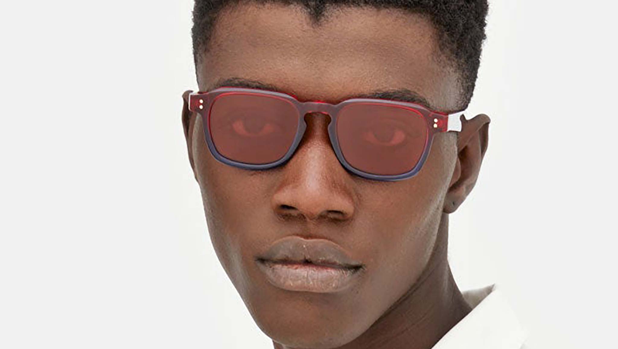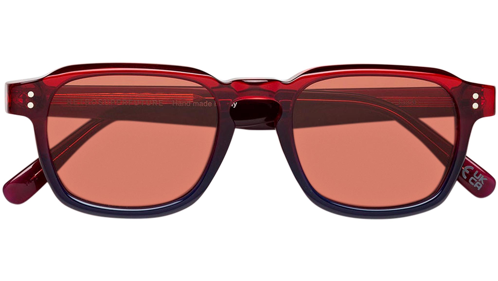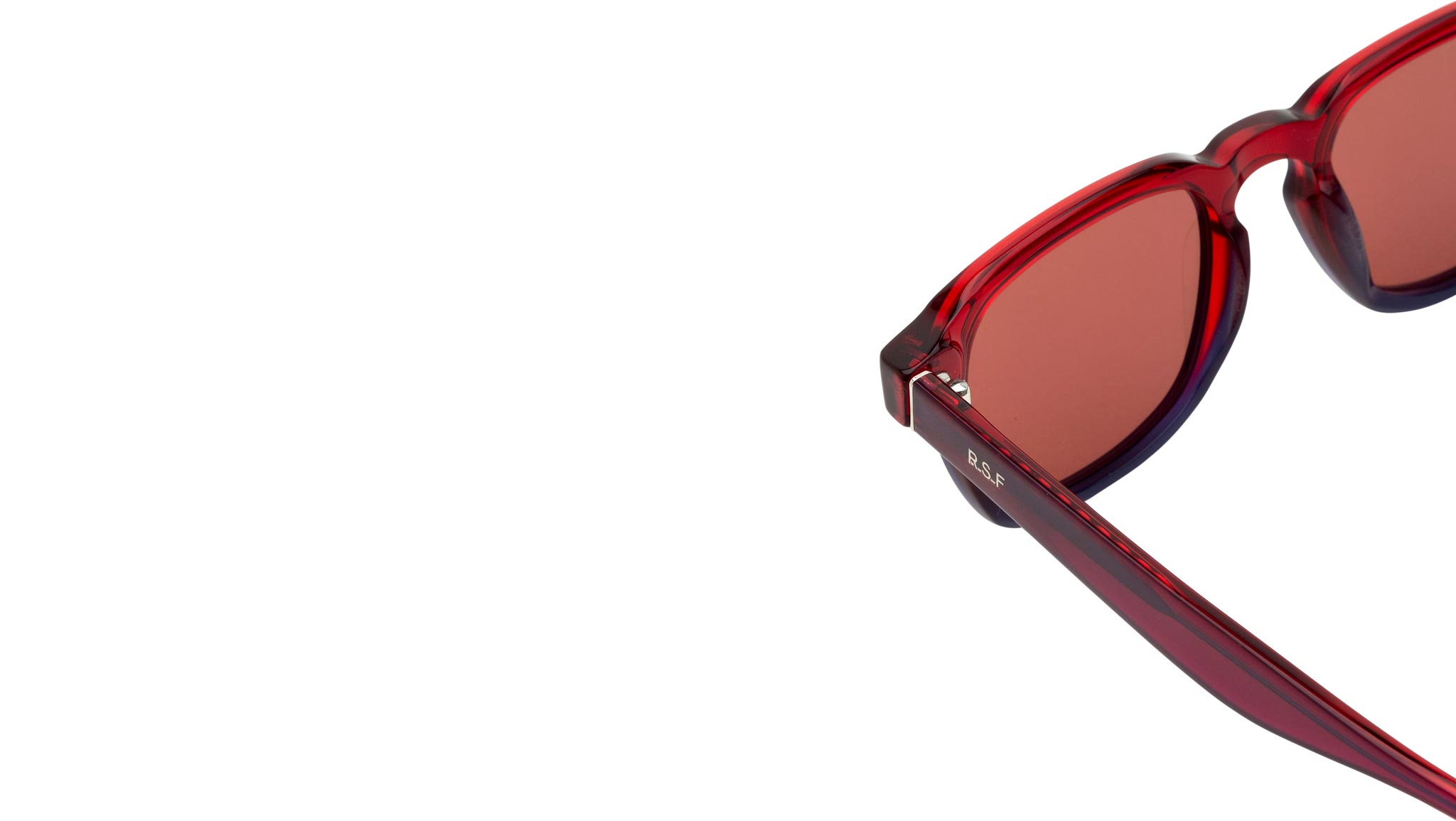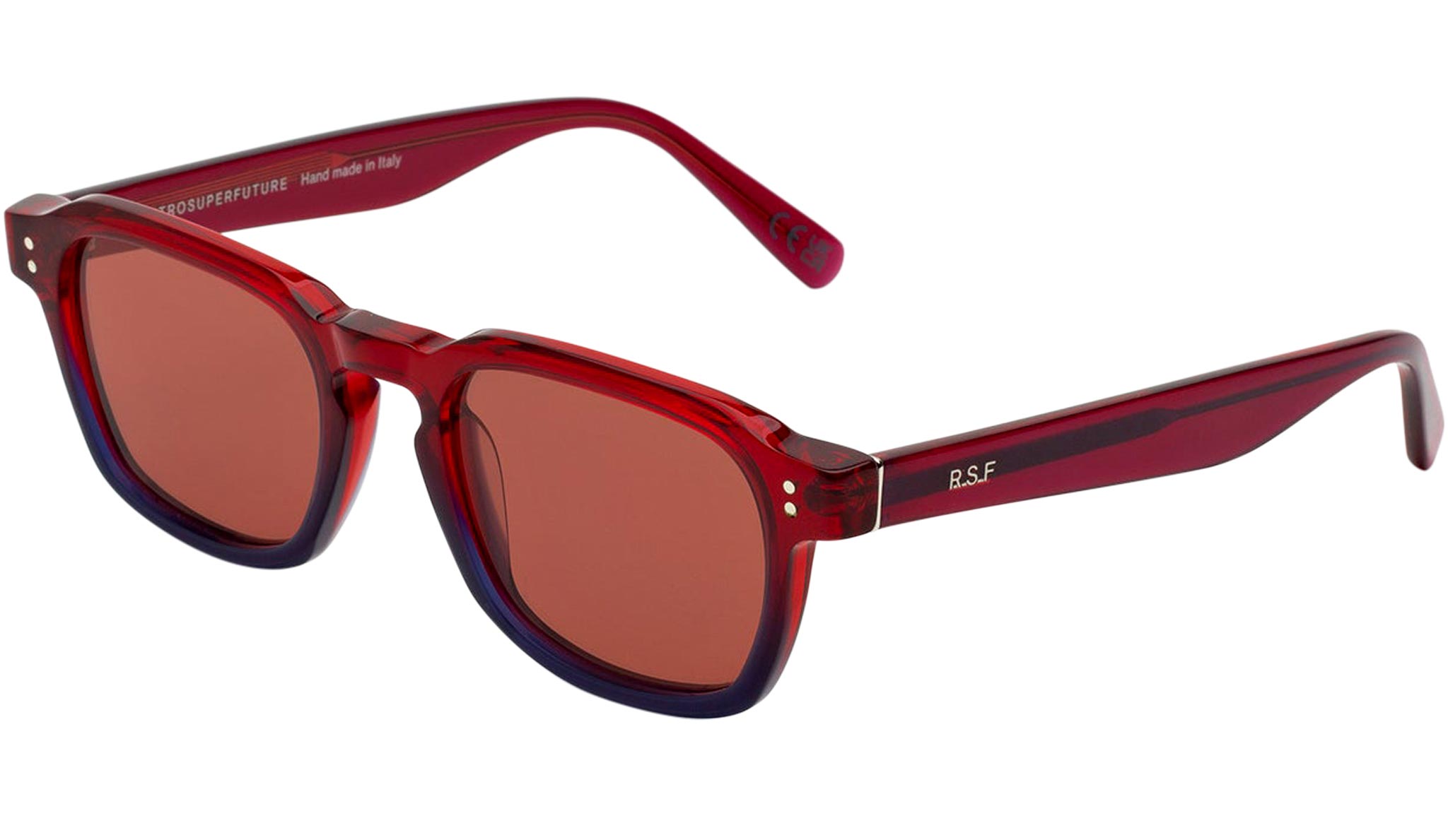 Luce is an iconic silhouette that matches vintage references with a street edge. Characterized by a wide horizontal profile, with angular temple tips, sleek rims and chiseled upper line, Luce is a sharp update on classic everyday frames. This model features a fading red and blue acetate with matching burgundy tinted lenses, for an elevated yet essential style. Sizes: R Lens Width: 50 mm. Frame Front: 140,5 mm. Frame Side: 145 mm. Product Code Size R: 88S