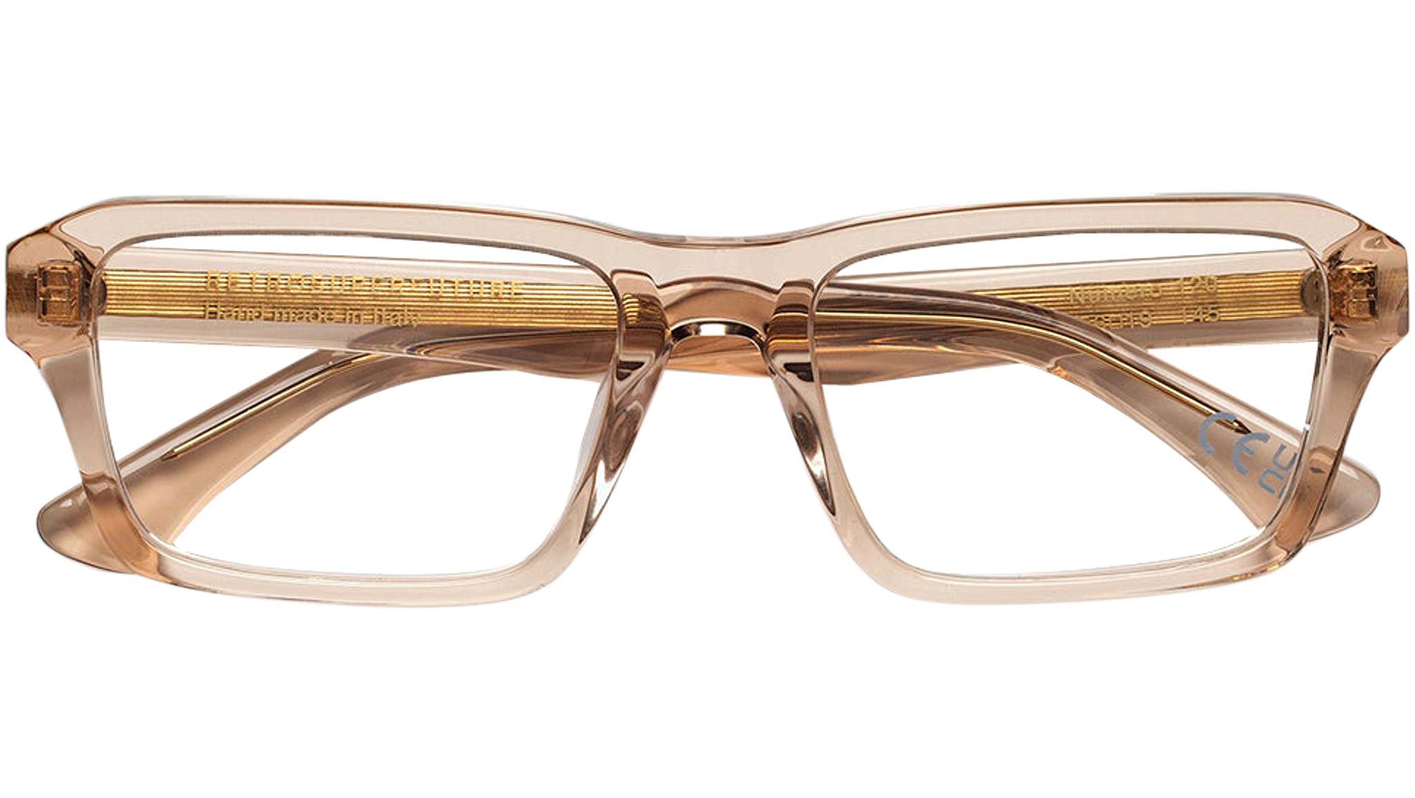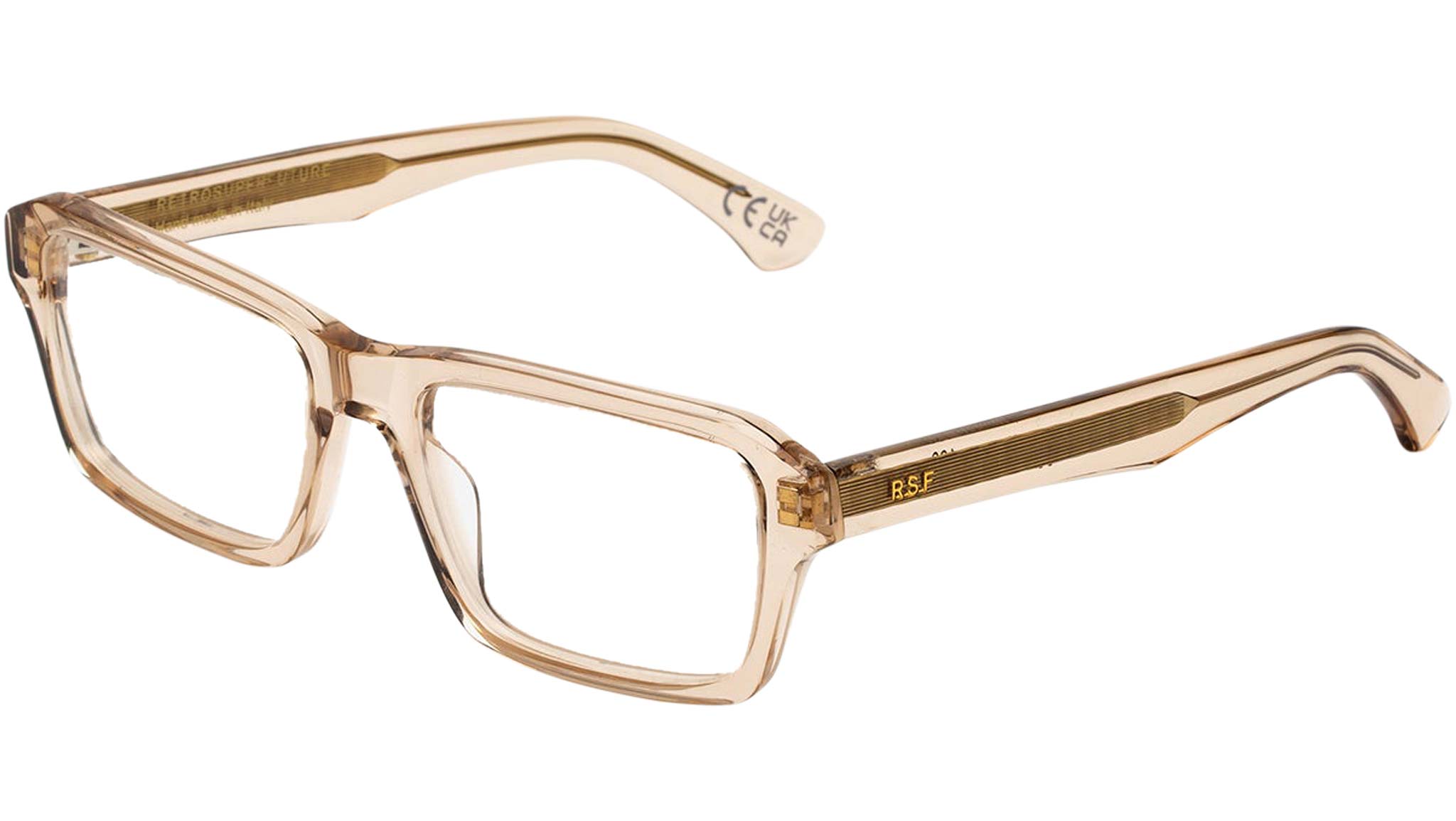 Numero 120 by Retrosuperfuture is a low riding rectangular design characterized by its geometric design with blunt angles. The model emphasizes a distinctive modern aesthetic, with a sturdy acetate build while maintaining a comfortable fit suitable for an all day everyday wear. This version of the Numero 120 is available in crystal resin acetate. Sizes: R Lens Width: 56 mm. Frame Front: Frame Side: 145 mm. Product Code Size R: 0G4