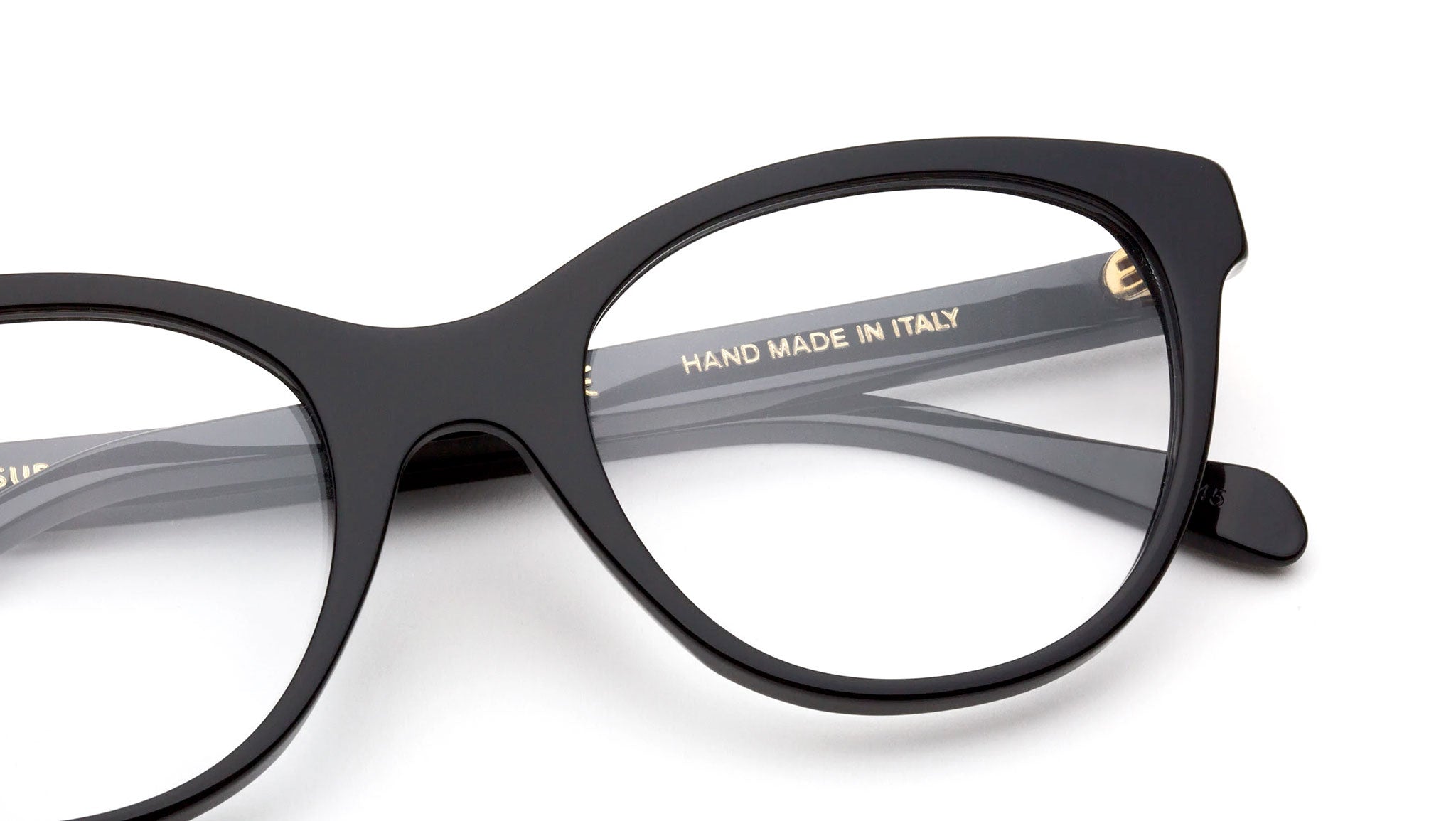 Numero 26 Nero is characterized by an arched upper segment of the frame, perfectly matched with a straightforward lower part of the frame , giving this model its unique contemporary appeal. Available in a black acetate. Prescription lenses not included.