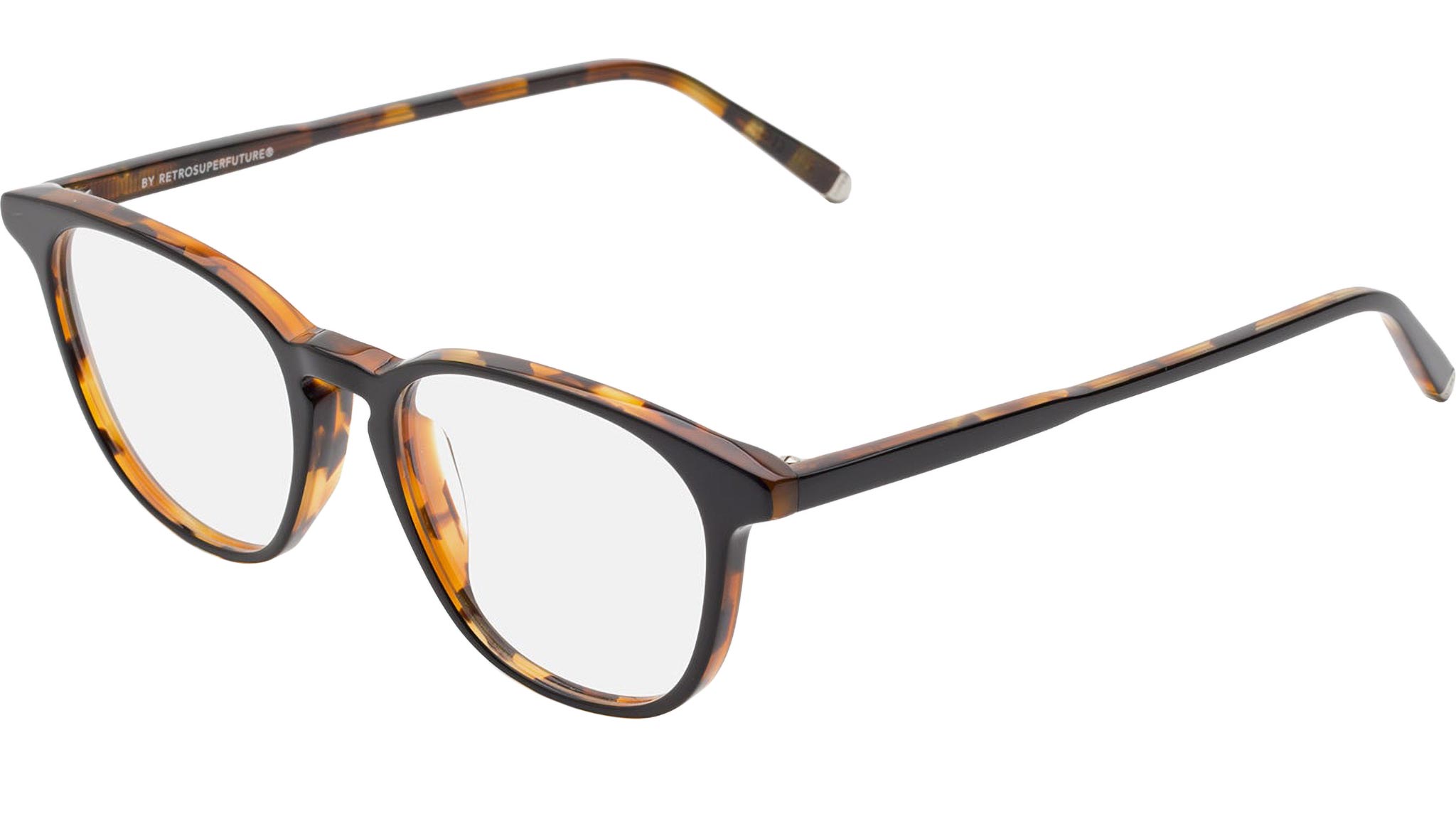 Numero 51 by Retrosuperfuture is a timeless everyday frame, characterized by a square outline and carefully crafted rims. With its wide rectangular lenses and sturdy temple tips this is a minimal everyday silhouette that comes in a vibrant Havana acetate with a contrasting black layer on the front. Prescription lenses not included. The box contains a hard case and a cleaning cloth.