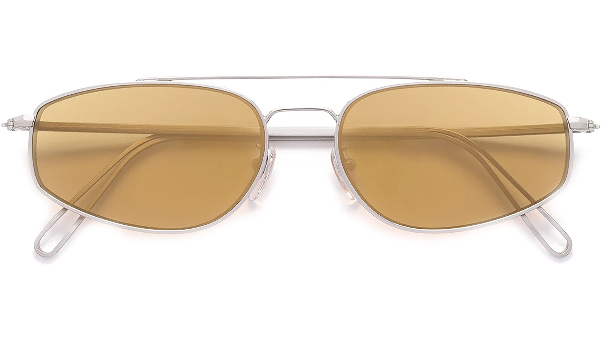 Tema is an innovative silhouette that plays with the aesthetics of early-2000s minimalism. Characterized by a light metal structure and wide lenses, this is a cutting-edge piece of eyewear. Tema comes with a silver finish and warm mustard lenses. The box contains a semi-hard case and a cleaning cloth.