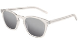 Il modello da sole SL 28 SLIM 006 della maison Yves Saint Laurent, con montatura crema trasparente e lenti color grigio argento specchiate. Saint Laurent Eyewear rappresenta in pieno le attitudini uniche del brand: stile senza tempo coniugato a un moderno concetto di lusso. La collezione sole offre una raffinata selezione di prodotti unici, contraddistinti da una qualità inarrivabile.