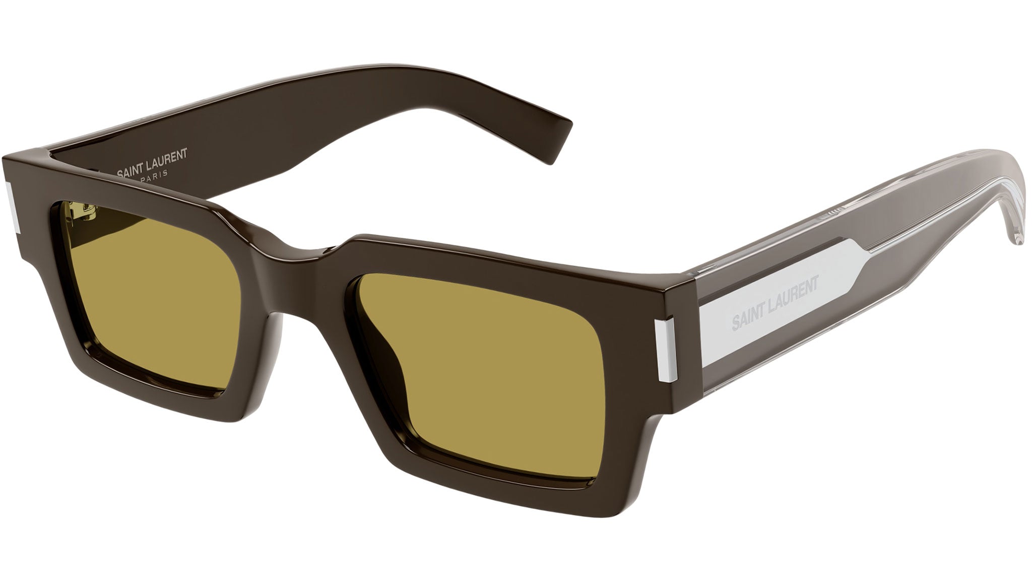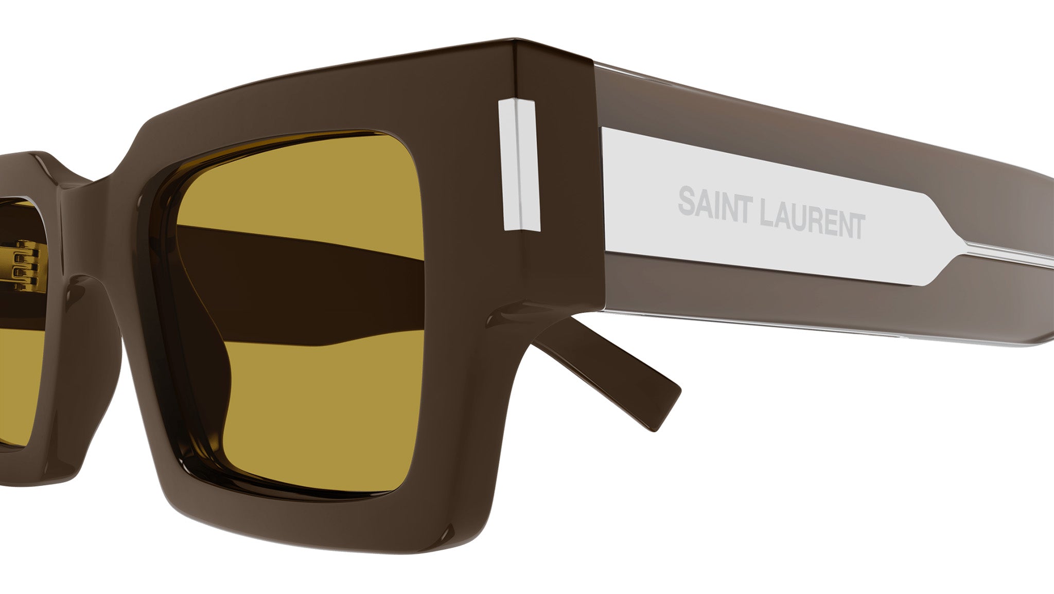 Occhiali da sole Saint Laurent SL 572 007 unisex con montatura rettangolare in acetato riciclato marrone scuro lucido tinta unita e lenti beige nicotina tinta unita. Linea: Classic. Codice modello: SL 572. Codice colore: 007. Made in Japan. Rivenditore autorizzato Saint Laurent online. Gli occhiali vengono consegnati con custodia e accessori originali e sono coperti dalla garanzia ufficiale di 12 mesi del produttore.