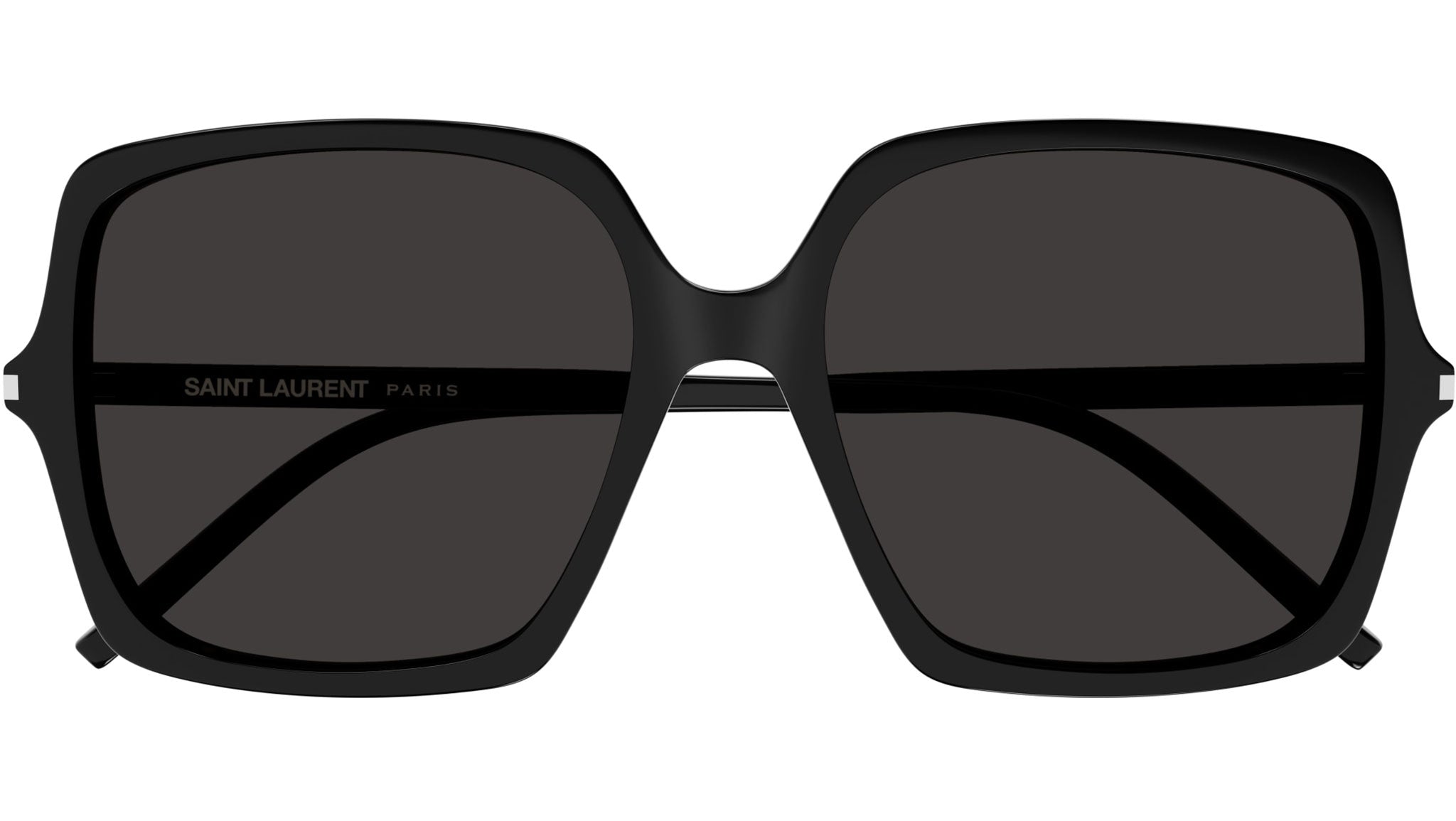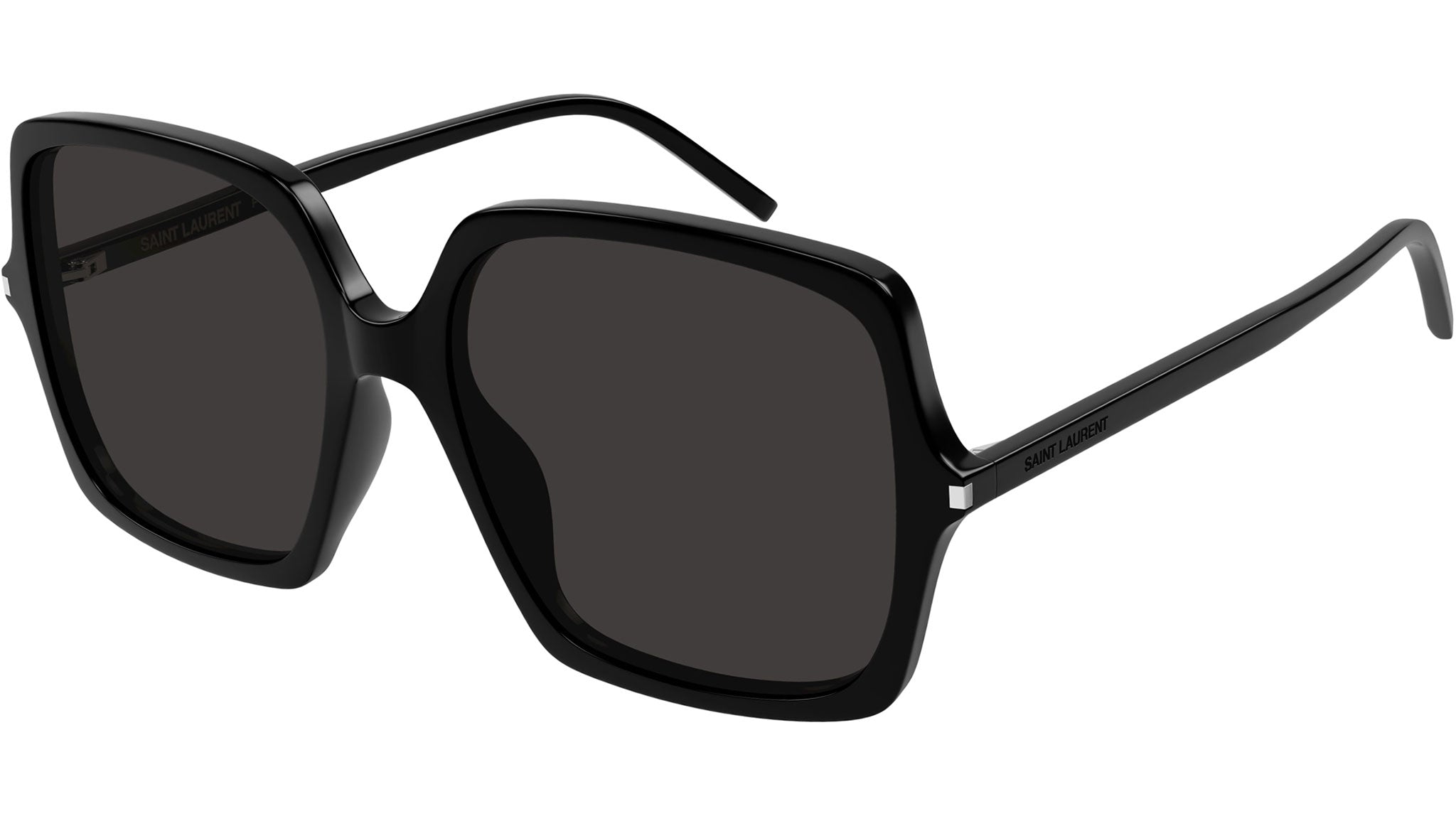 Occhiali da sole Saint Laurent modello SL 591 linea Classic codice colore 001 nero lucido tinta unita in acetato riciclato forma butterfly con lenti color nero tinta unita.