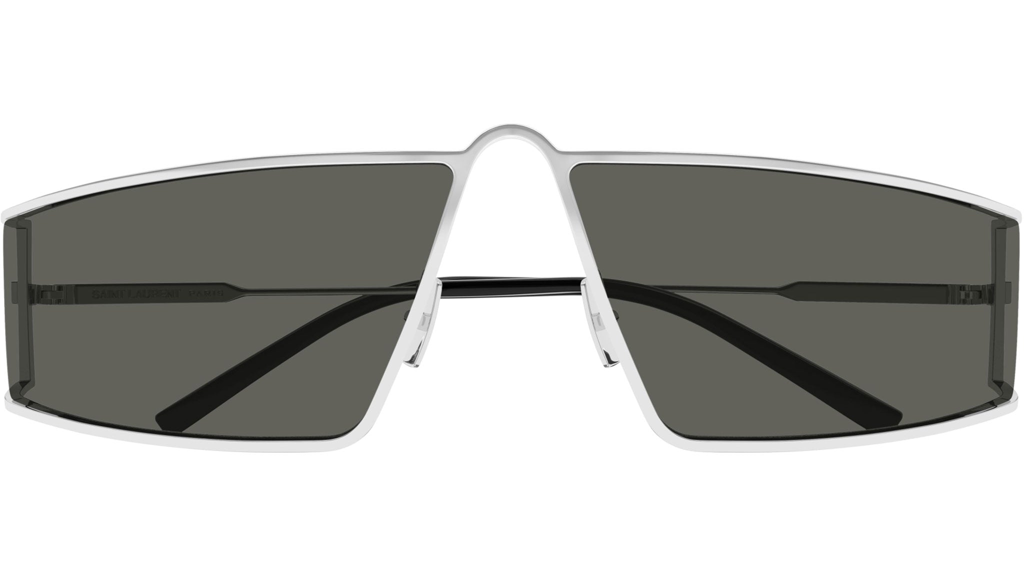 Occhiali da sole Saint Laurent modello SL 606 linea New Wave codice colore 002 argento lucido in metallo forma rectangle con lenti color grigio tinta unita.
