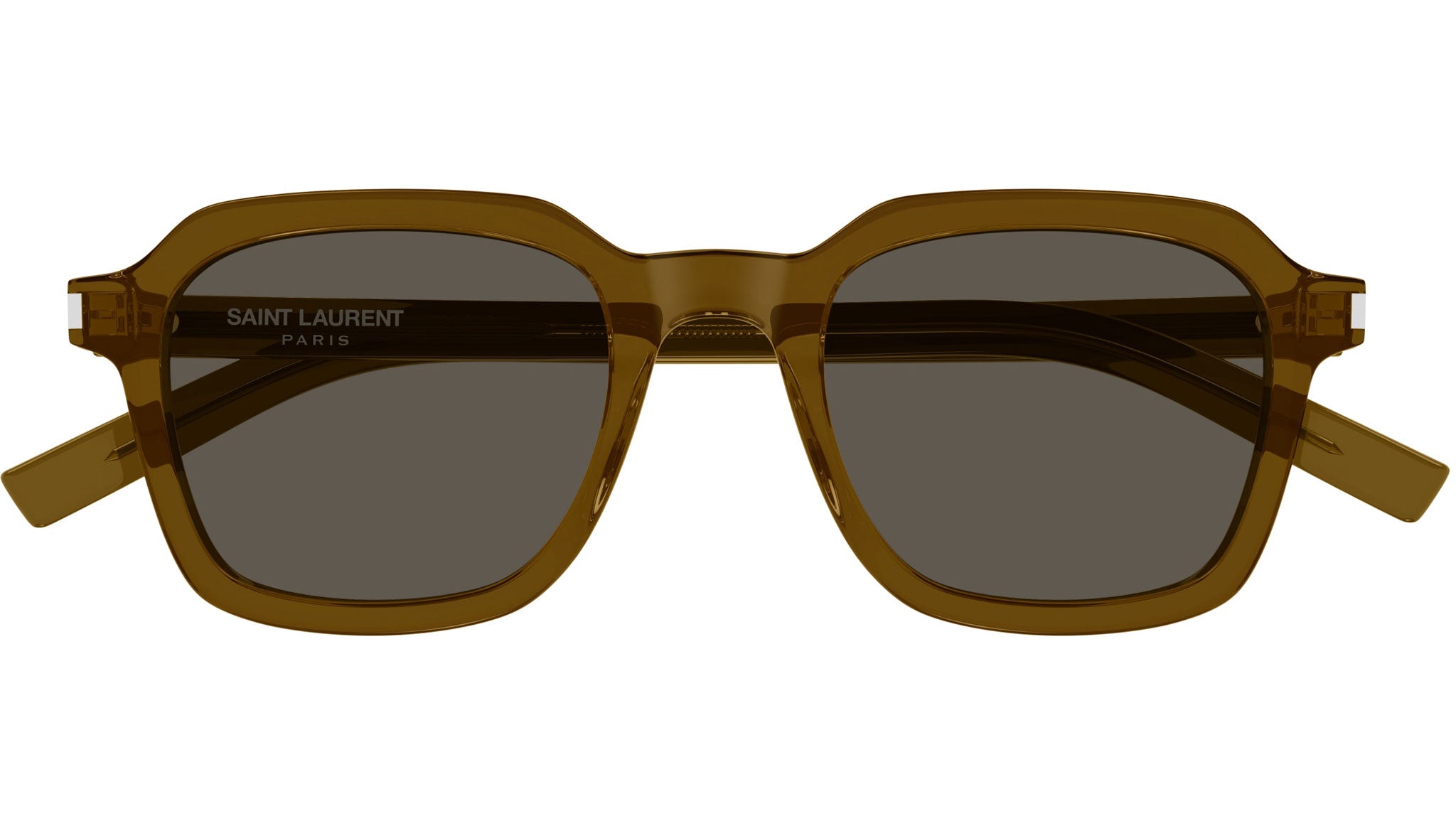 Occhiali da sole Saint Laurent SL 715 SLIM 005 unisex con montatura rettangolare in acetato riciclato marrone cognac trasparente e lenti marrone chiaro tinta unita. Linea: Corner Angle. Codice modello: SL 715 SLIM. Codice colore: 005. Made in Italy. Rivenditore autorizzato Saint Laurent online. Gli occhiali vengono consegnati con custodia e accessori originali e sono coperti dalla garanzia ufficiale di 12 mesi del produttore.