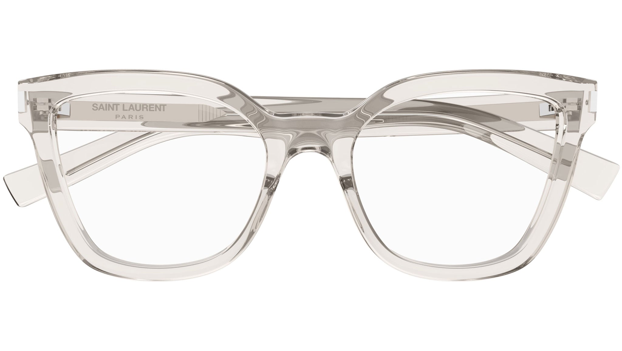 Occhiali da vista Saint Laurent SL 748 004 donna con montatura cat eye in acetato riciclato crema trasparente lucido e lenti demo. Linea: Corner Angle. Codice modello: SL 748. Codice colore: 004. Made in Japan. Rivenditore autorizzato Saint Laurent online. Gli occhiali vengono consegnati con custodia e accessori originali e sono coperti dalla garanzia ufficiale di 12 mesi del produttore.