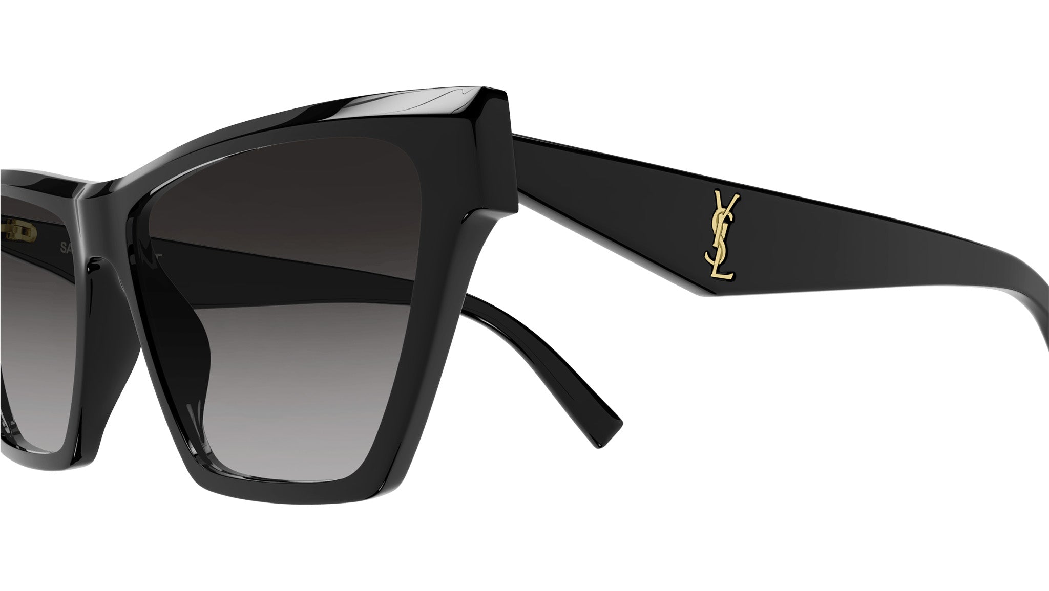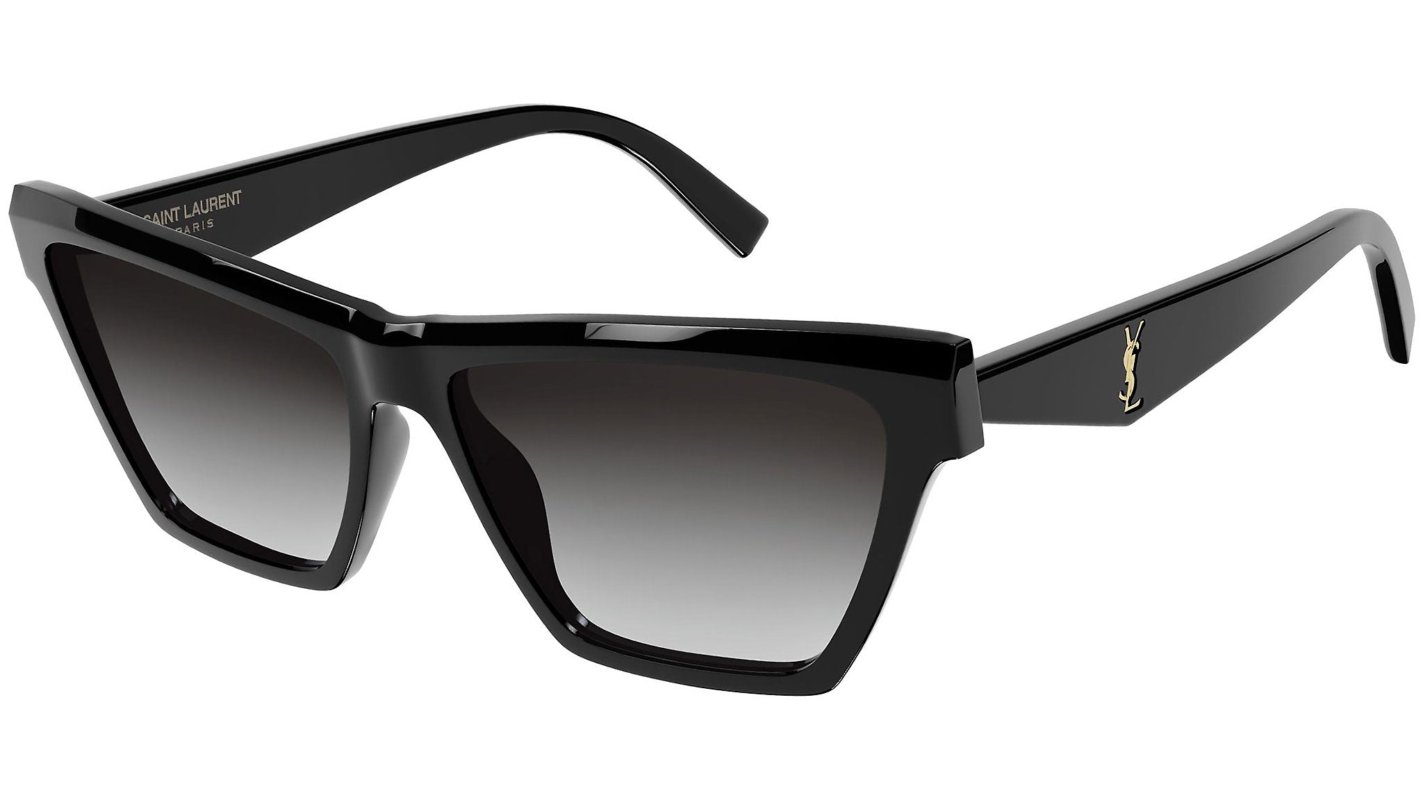 Occhiali da sole Saint Laurent linea Monogram modello SL M103 001, variante colore nero lucido con lenti color grigio sfumato. Saint Laurent Eyewear rappresenta in pieno le attitudini uniche del brand: stile senza tempo coniugato a un moderno concetto di lusso. La collezione YSL di occhiali da sole offre una raffinata selezione di prodotti unici, contraddistinti da una qualità inarrivabile.