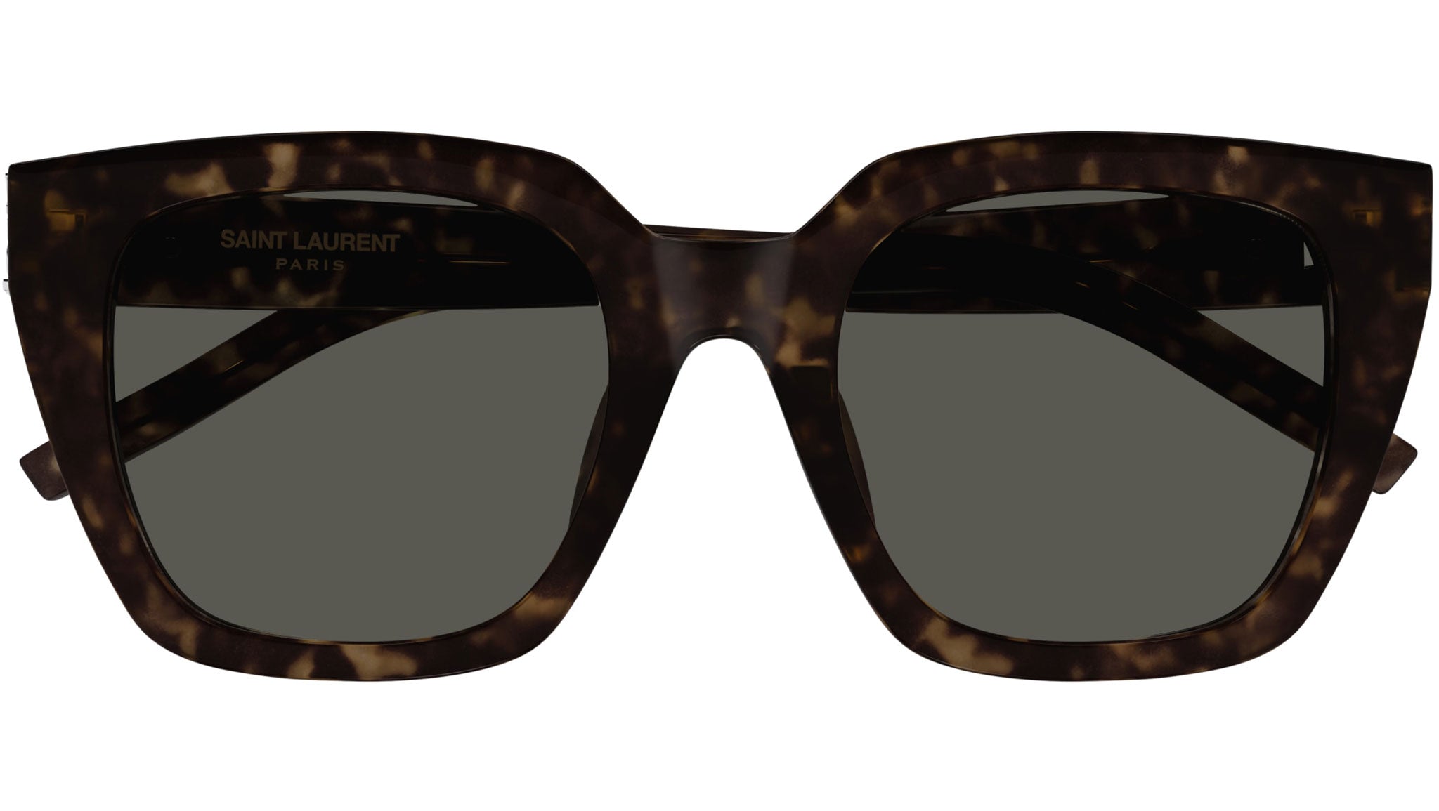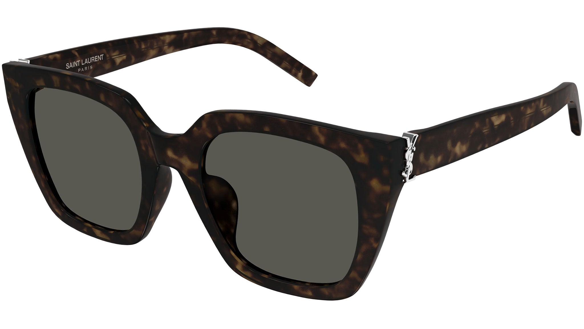 Occhiali da sole Saint Laurent SL M143 002 donna con montatura cat eye in acetato riciclato avana scuro lucido e lenti grigio tinta unita. Linea: Monogram. Codice modello: SL M143. Codice colore: 002. Made in Italy. Rivenditore autorizzato Saint Laurent online. Gli occhiali vengono consegnati con custodia e accessori originali e sono coperti dalla garanzia ufficiale di 12 mesi del produttore.