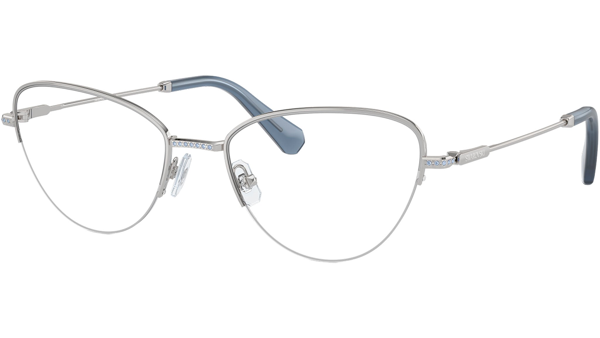 Montatura per occhiali da vista Swarovski donna modello 1010 semi rim in metallo argento con lenti demo base 4. Naselli regolabili. Linea: Science of Elegance. Codice brand: 0SK1010. Codice colore: 4001. Rivenditore autorizzato online Swarovski Eyewear. Ogni prodotto Swarovski viene consegnato con astuccio originale e accessori ed è coperto da garanzia del produttore di 12 mesi.