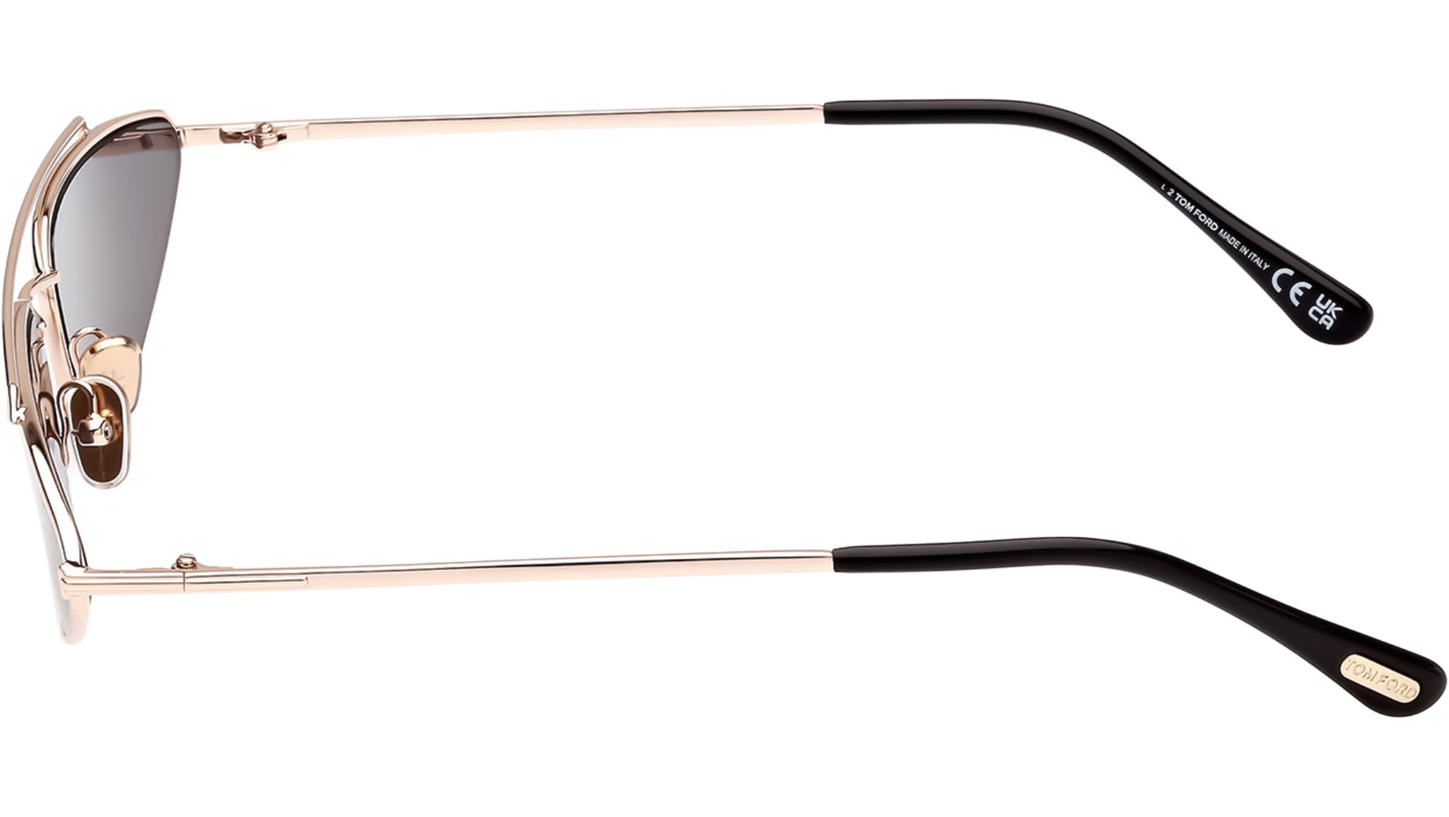 Occhiali da sole Tom Ford donna modello Cam FT0979 in metallo oro rosa lucido con lenti color grigio fumo. Codice brand: 0979. Codice colore: 28A. Rivenditore autorizzato Tom Ford online. Gli occhiali vengono consegnati con custodia e accessori originali e sono coperti da garanzia standard di 12 mesi del produttore.