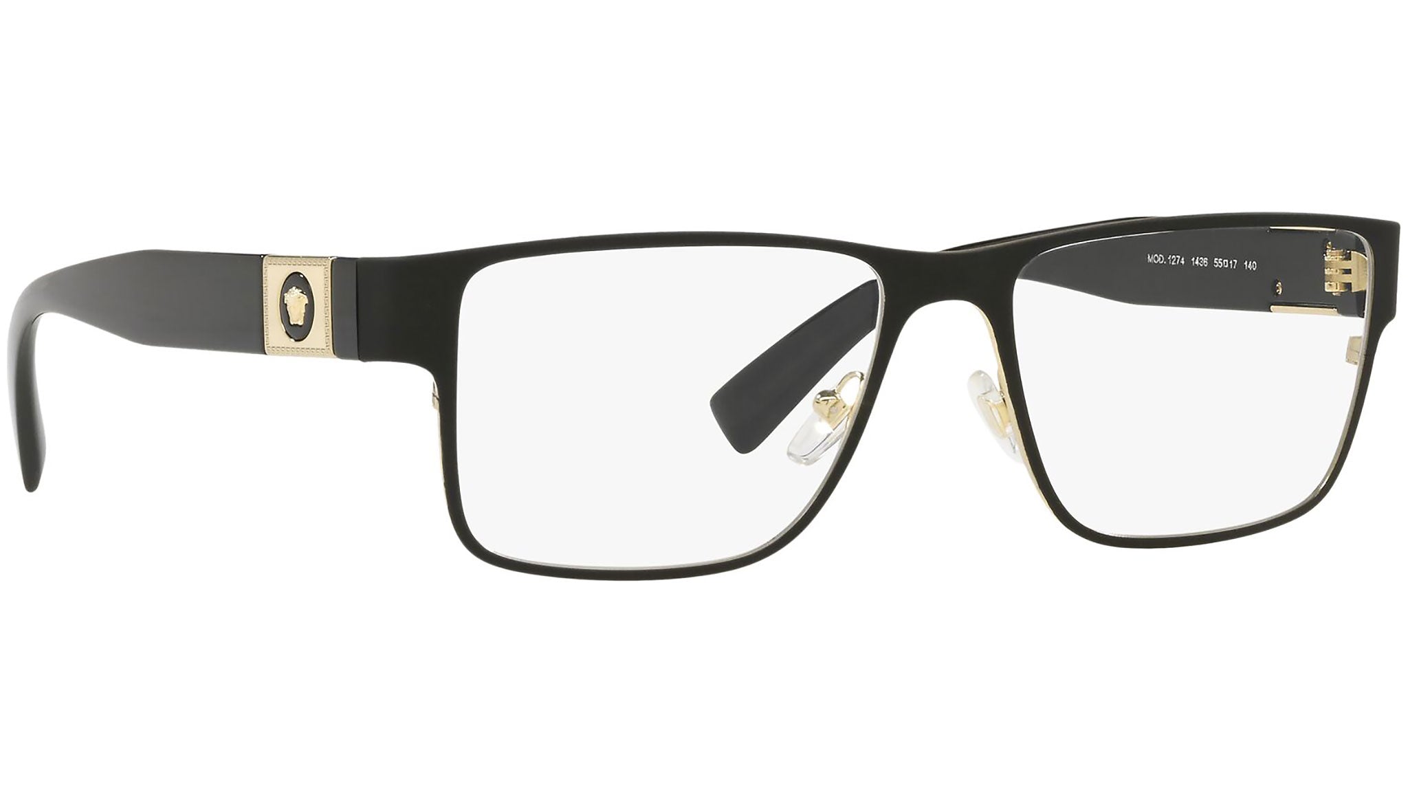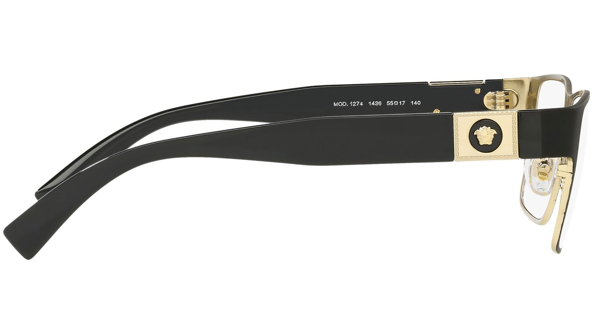 Occhiali da vista Versace modello VE1274 variante colore nero opaco / oro, codice colore 1436. Dedicata a chi desidera uno stile contemporaneo, sexy, sofisticato e dalla forte personalità, Versace è una delle case di alta moda e lusso più iconiche e famose al mondo. La collezione eyewear combina innovazione tecnica e stile essenziale del brand, ed è fortemente caratterizzata dagli elementi decorativi che da sempre contraddistinguono la Maison.